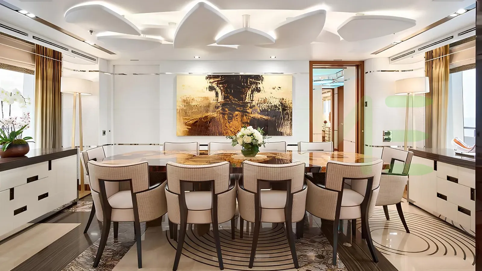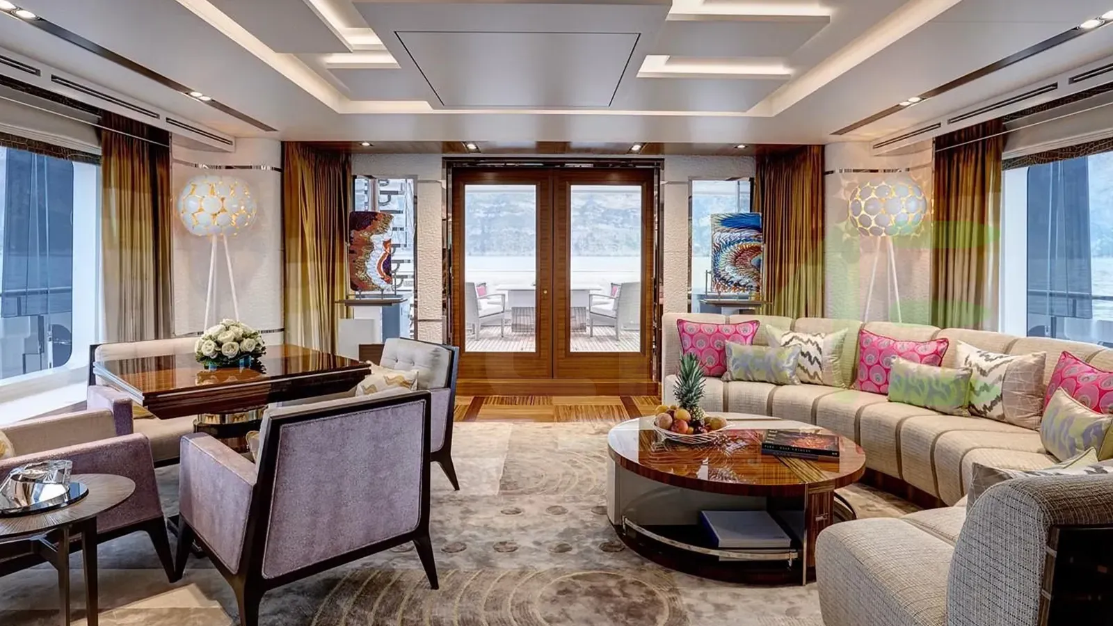 With a gross tonnage of 499, the PHILOSOPHY yacht for charter provides ample interior space for enjoyment. PHILOSOPHY offers accommodations for up to 8 guests in 4 lavishly appointed staterooms. She can also carry up to 8 crew onboard, including the Captain, to ensure a relaxed luxury yacht charter experience. The interior design by Bannenberg & Rowell Design exudes a sense of luxury, seamlessly blending comfort with style.