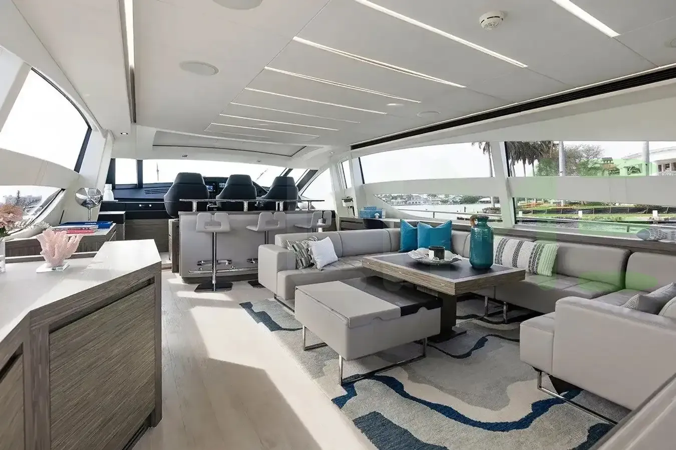 Built by Pershing in Italy, this stunning yacht boasts a length of 81' 11" (24.98m), a beam of 18' 1" (5.5m), and a draft of 4' 7" (1.4m).