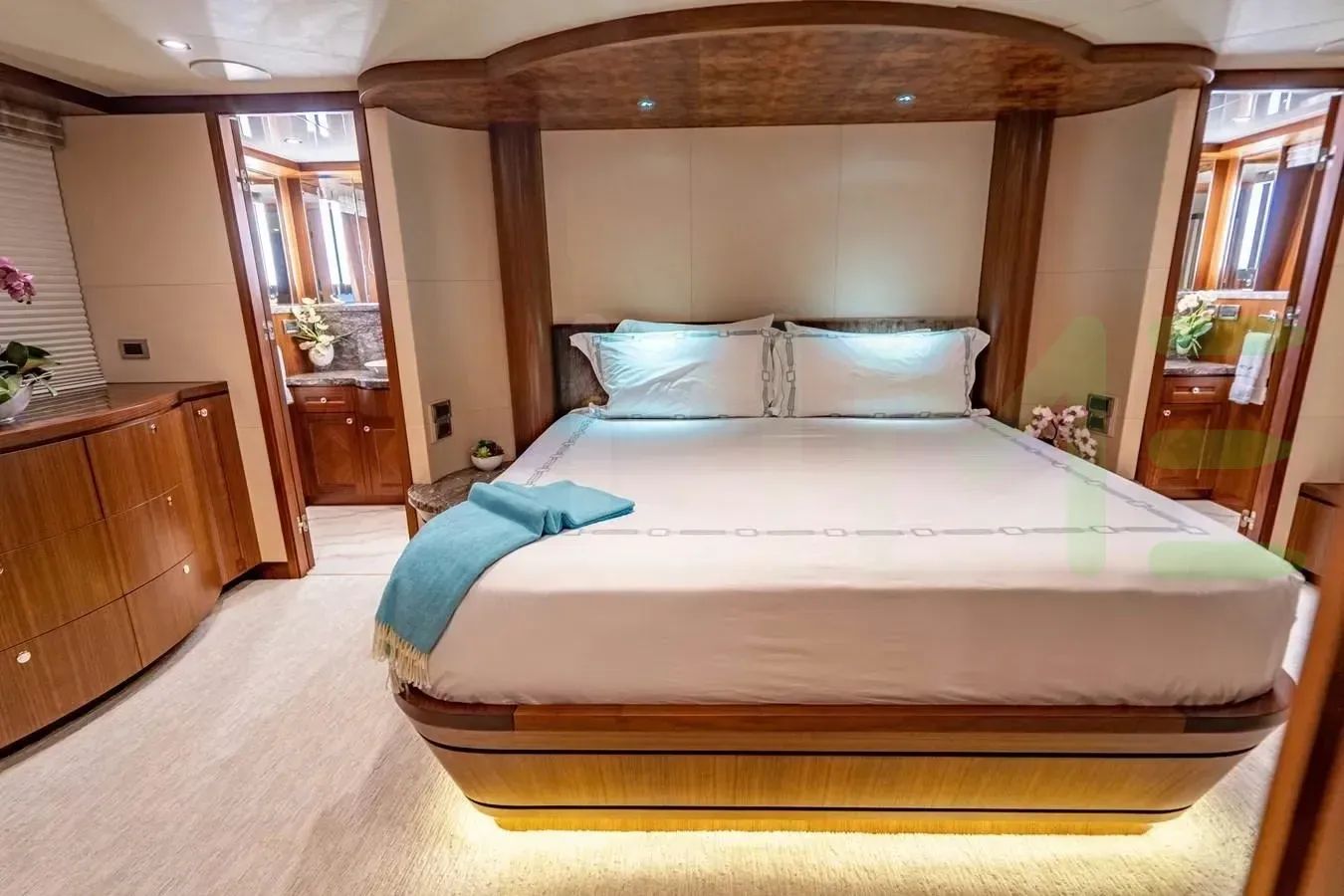 With a gross tonnage of 173, the PICO yacht for charter provides ample interior space for enjoyment. PICO offers accommodations for up to 8 guests . She can also carry up to 3 crew onboard, including the Captain, to ensure a relaxed luxury yacht charter experience. The interior design by Evan K Marshall exudes a sense of luxury, seamlessly blending comfort with style.