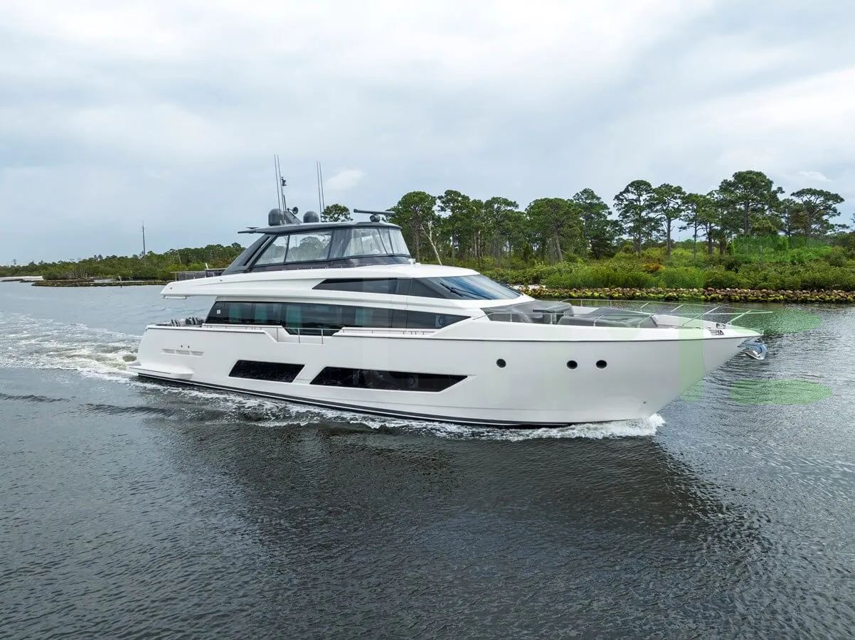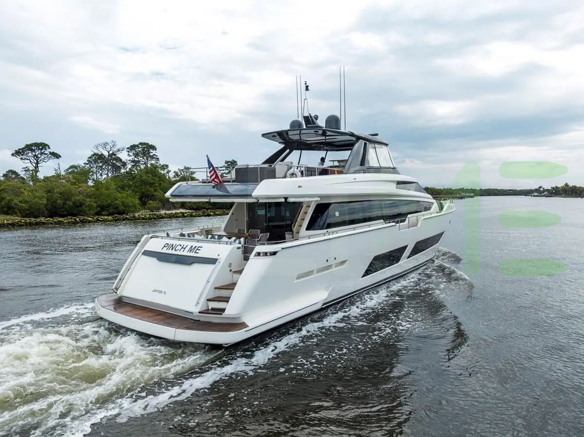 Built by Ferretti in Italy, this stunning yacht boasts a length of 85' (25.91m), a beam of 20' 7" (6.28m), and a draft of 6' 7" (2m).