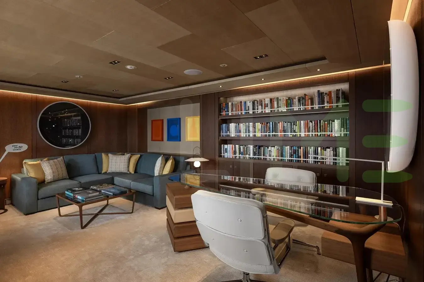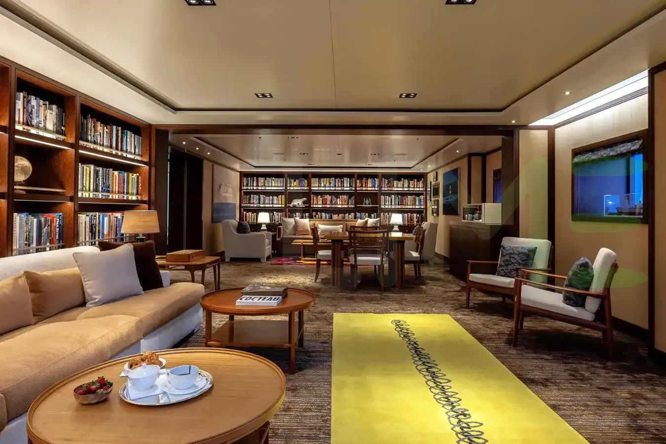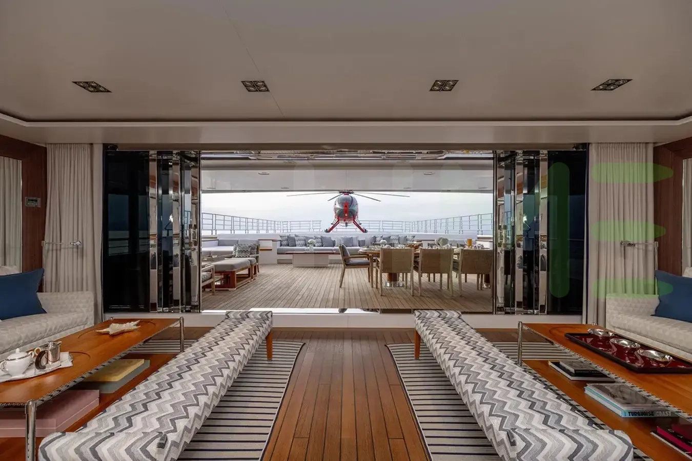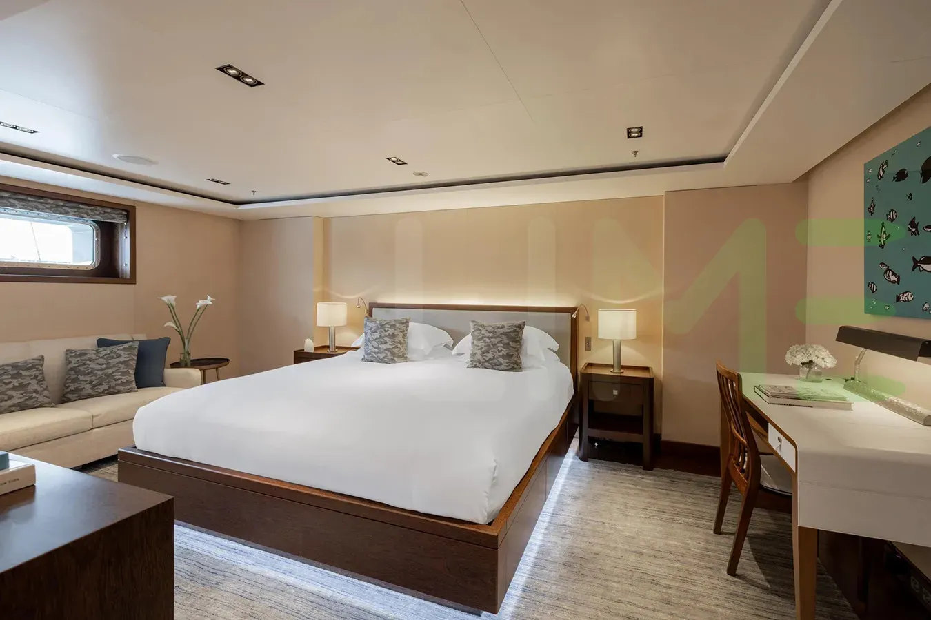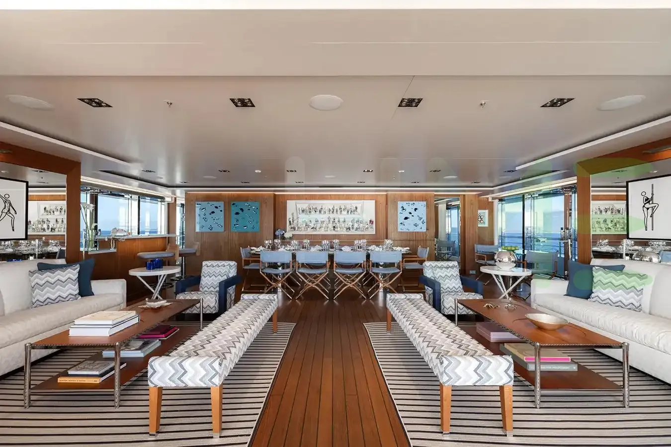With a gross tonnage of 2,100, the PLANET NINE yacht for charter provides ample interior space for enjoyment. PLANET NINE offers accommodations for up to 16 guests in 9 lavishly appointed staterooms. She can also carry up to 20 crew onboard, including the Captain, to ensure a relaxed luxury yacht charter experience. The interior design by Fitz Interior, Destry Darr Designs exudes a sense of luxury, seamlessly blending comfort with style.