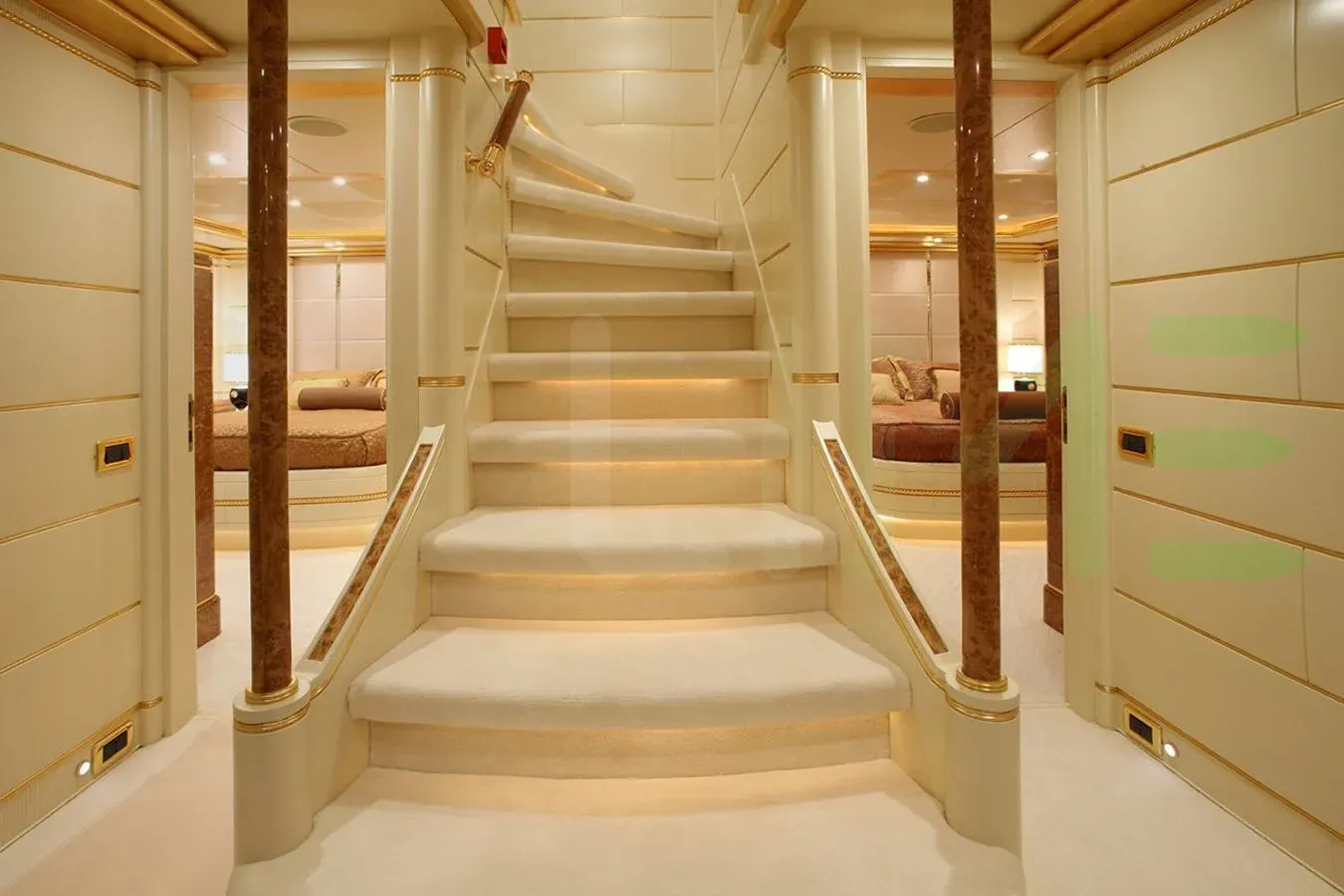 With a gross tonnage of 498, the PLATINUM yacht for charter provides ample interior space for enjoyment. PLATINUM offers accommodations for up to 12 guests . She can also carry up to 11 crew onboard, including the Captain, to ensure a relaxed luxury yacht charter experience. The interior design by Benetti SpA exudes a sense of luxury, seamlessly blending comfort with style.