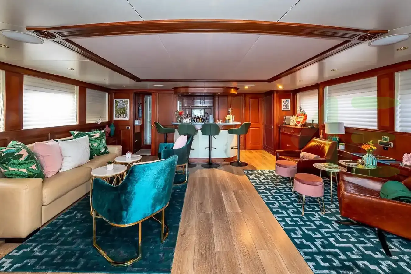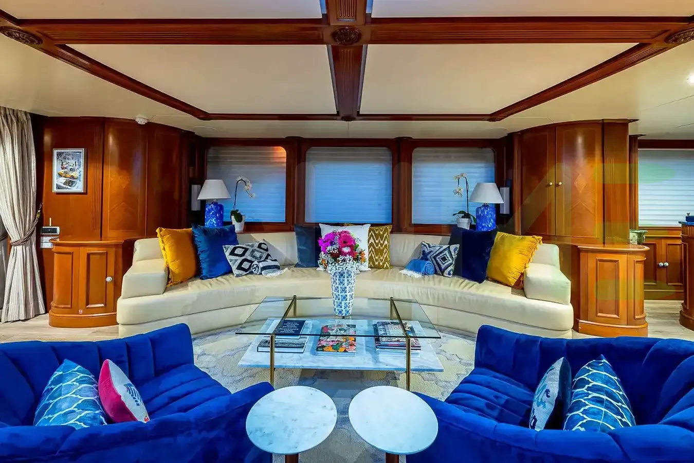 With a gross tonnage of 247, the POUR ANOTHER yacht for charter provides ample interior space for enjoyment. POUR ANOTHER offers accommodations for up to 10 guests in 4 lavishly appointed staterooms. She can also carry up to 8 crew onboard, including the Captain, to ensure a relaxed luxury yacht charter experience. The interior design by Zuretti Interior Design exudes a sense of luxury, seamlessly blending comfort with style.