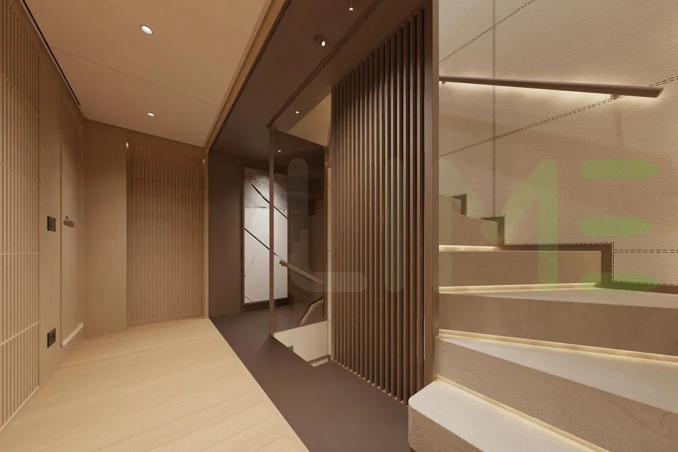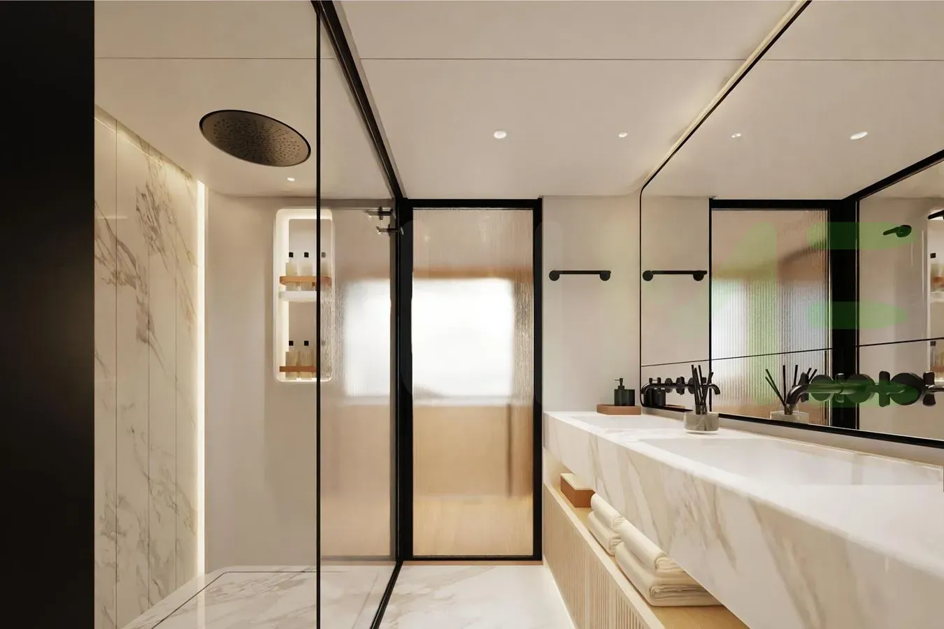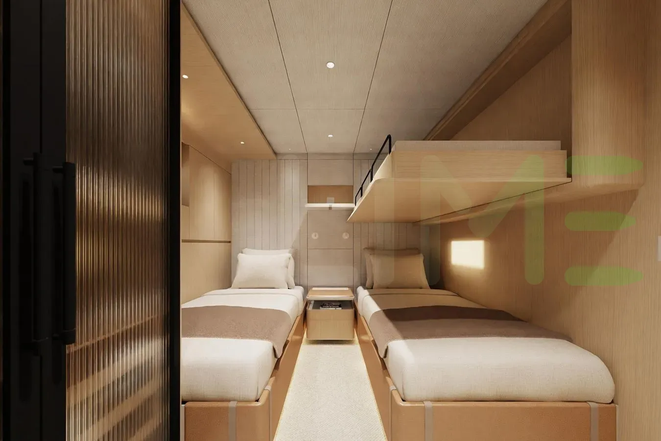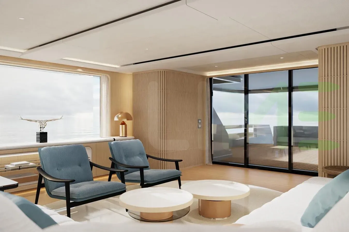With a gross tonnage of 413, the PRESENCE yacht for charter provides ample interior space for enjoyment. PRESENCE offers accommodations for up to 8 guests . She can also carry up to 7 crew onboard, including the Captain, to ensure a relaxed luxury yacht charter experience. The interior design by Cassetta Yacht Designers exudes a sense of luxury, seamlessly blending comfort with style.