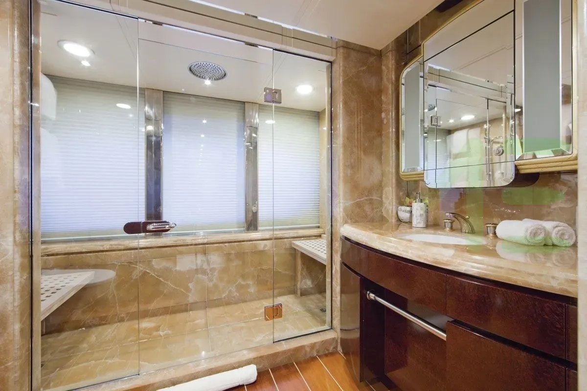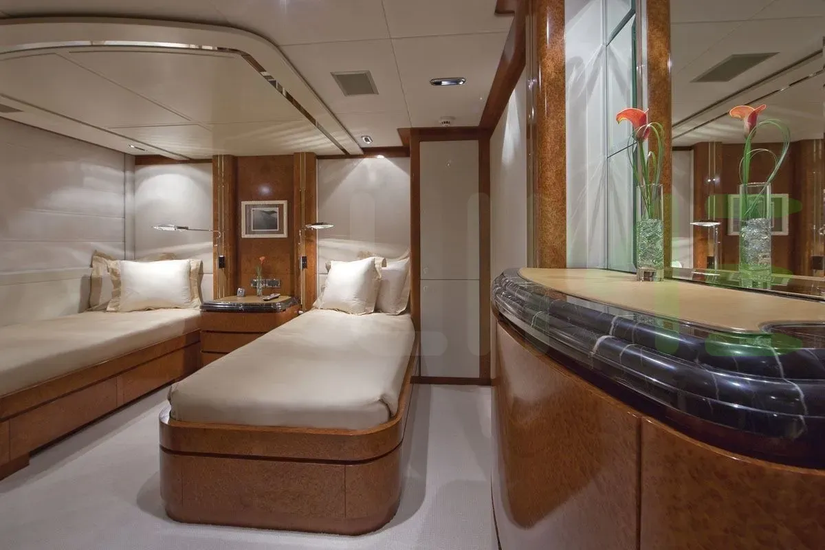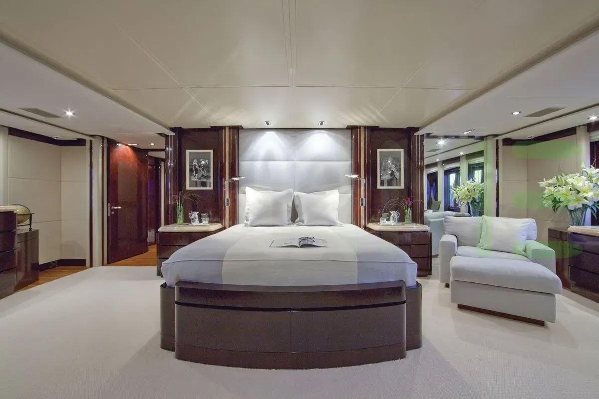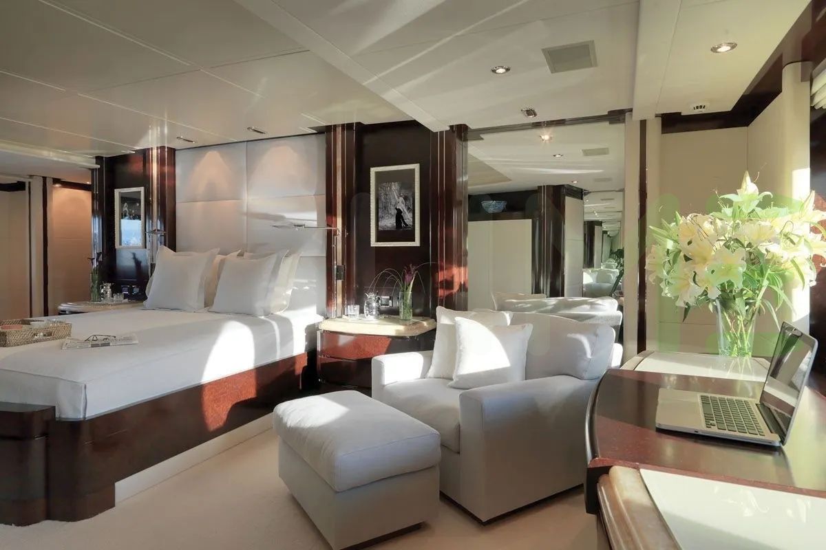 With a gross tonnage of 552, the PRINCESS TOO yacht for charter provides ample interior space for enjoyment. PRINCESS TOO offers accommodations for up to 12 guests in 6 lavishly appointed staterooms. She can also carry up to 10 crew onboard, including the Captain, to ensure a relaxed luxury yacht charter experience. The interior design by Sam Sorgiovanni Designs P/L exudes a sense of luxury, seamlessly blending comfort with style.