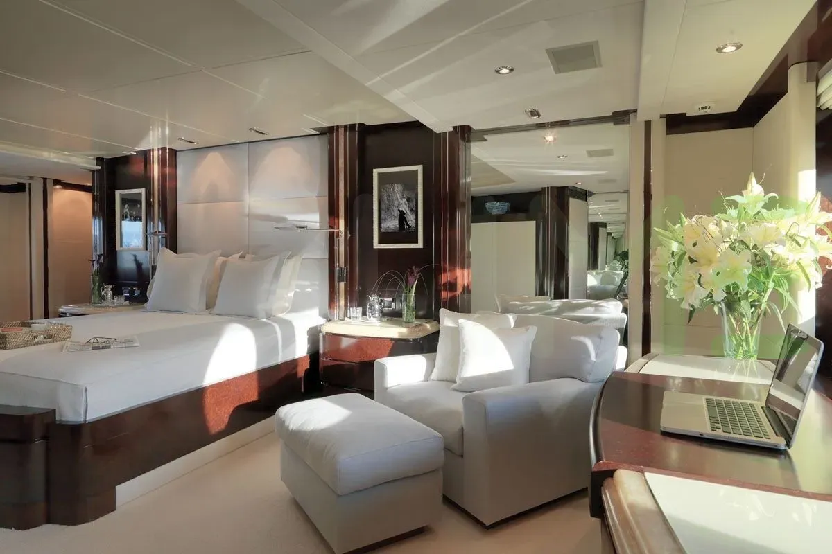 The exterior, designed by De Voogt Naval Architects, Sam Sorgiovanni Designs P/L, captures your attention with beautiful lines and impeccable craftsmanship. Whether you're lounging on the spacious decks or enjoying water sports in a secluded anchorage, the PRINCESS TOO yacht for charter, built of Steel and Aluminium, offers a wealth of opportunities for relaxation and adventure.