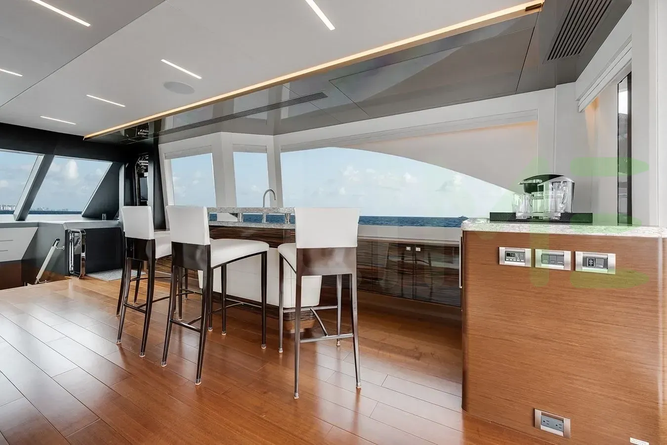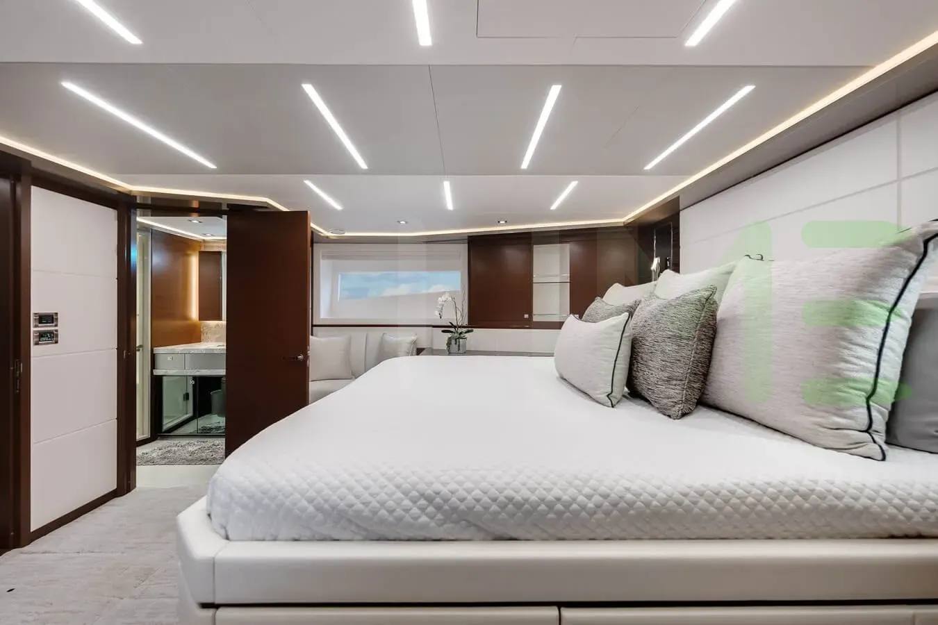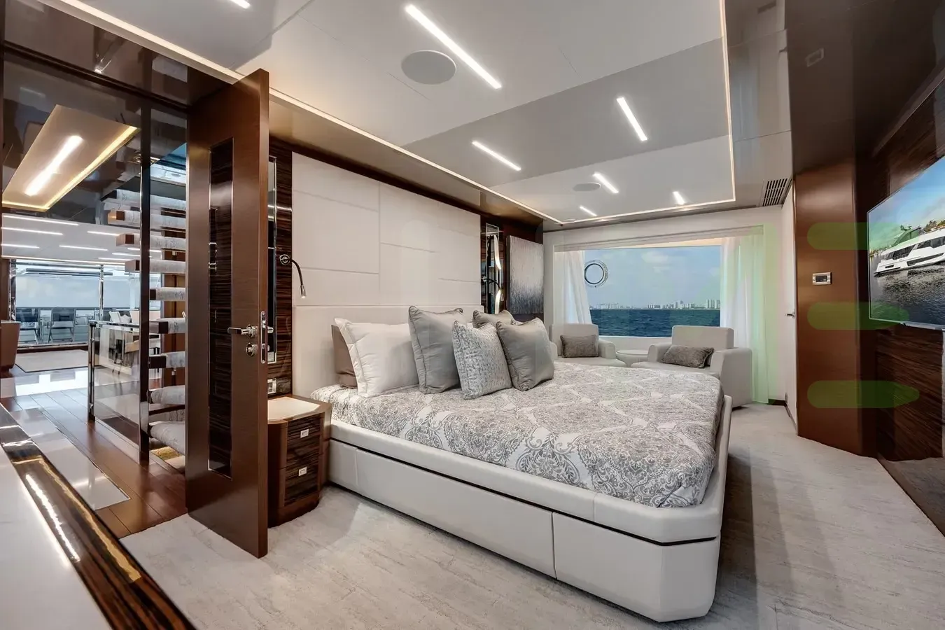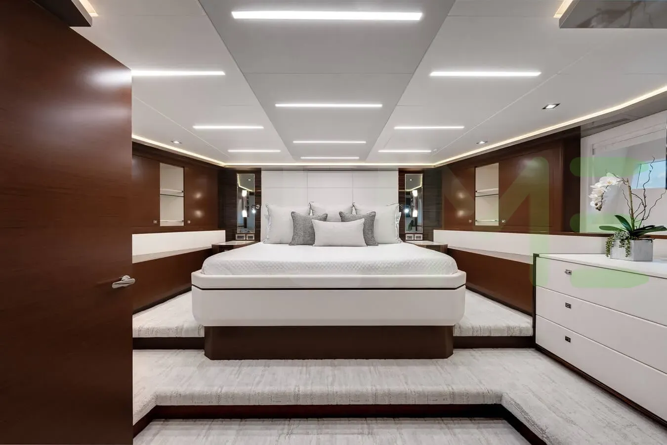 Built by Ocean Alexander in Taiwan, this stunning yacht boasts a length of 90' 2" (27.48m), a beam of 22' 5" (6.83m), and a draft of 5' 10" (1.79m).