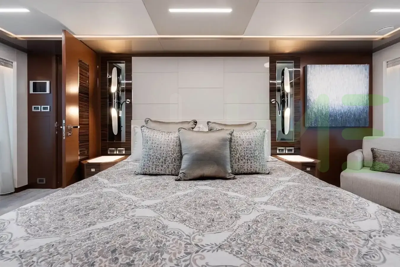 With a gross tonnage of 136, the PRODIGALITY yacht for charter provides ample interior space for enjoyment. PRODIGALITY offers accommodations for up to 8 guests . She can also carry up to 3 crew onboard, including the Captain, to ensure a relaxed luxury yacht charter experience. The interior design by Evan K Marshall exudes a sense of luxury, seamlessly blending comfort with style.