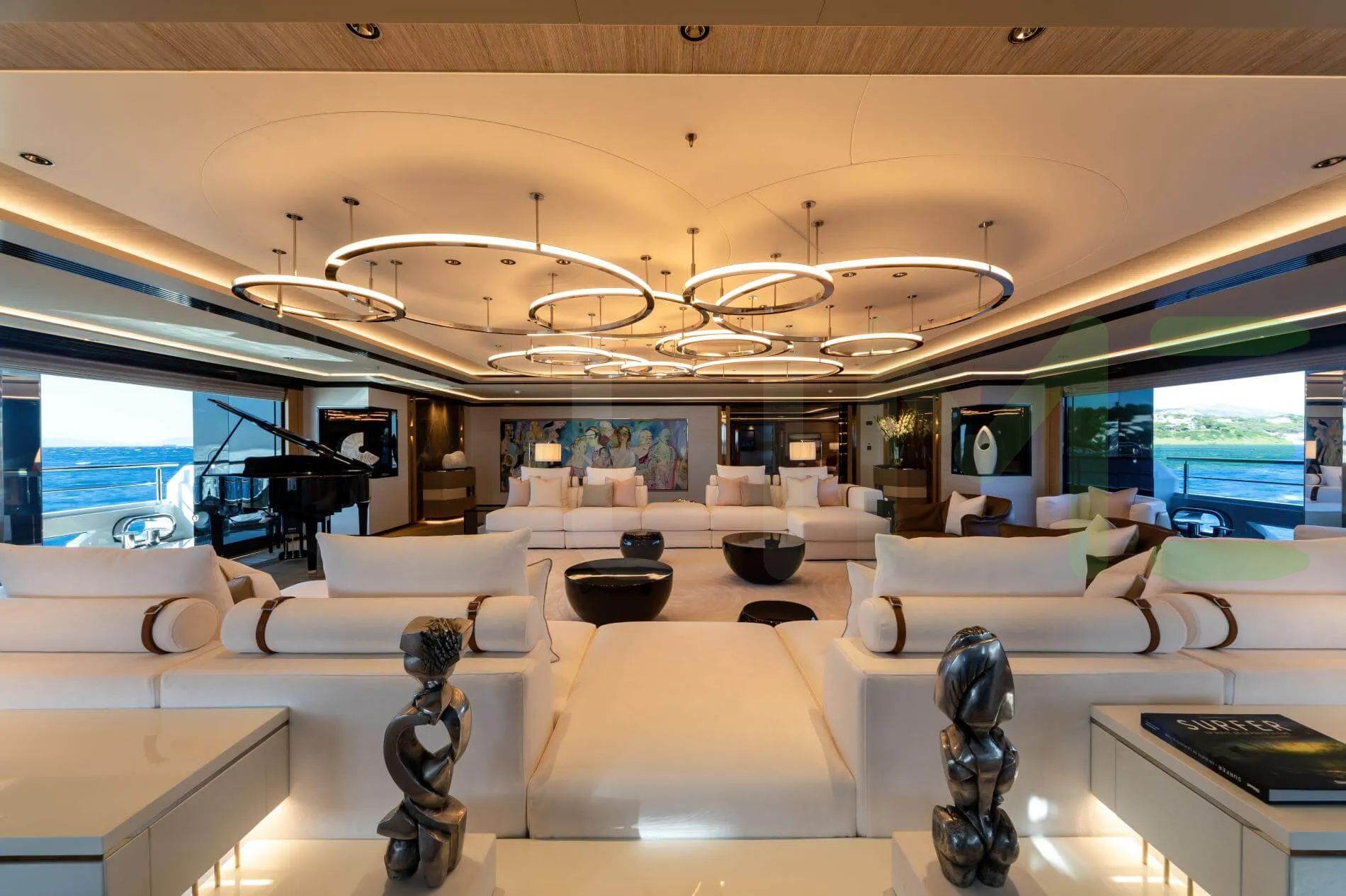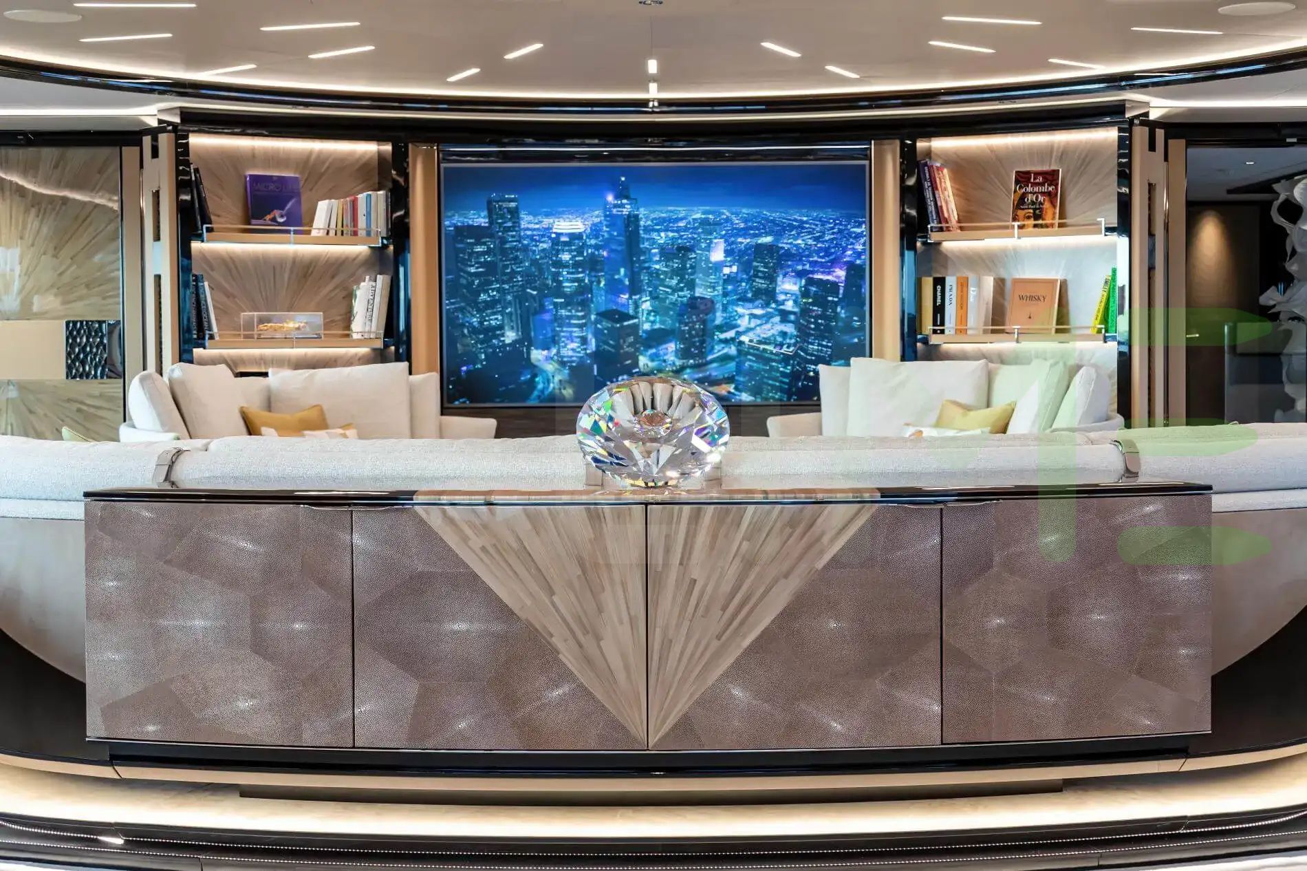 With a gross tonnage of 2,973, the PROJECT X yacht for charter provides ample interior space for enjoyment. PROJECT X offers accommodations for up to 12 guests in 9 lavishly appointed staterooms. She can also carry up to 28 crew onboard, including the Captain, to ensure a relaxed luxury yacht charter experience. The interior design by Massari Design S.r.l. exudes a sense of luxury, seamlessly blending comfort with style.