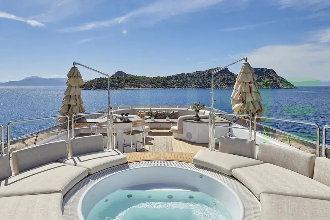 - Superb sundeck with exceptionally large jacuzzi and sunpad spread
