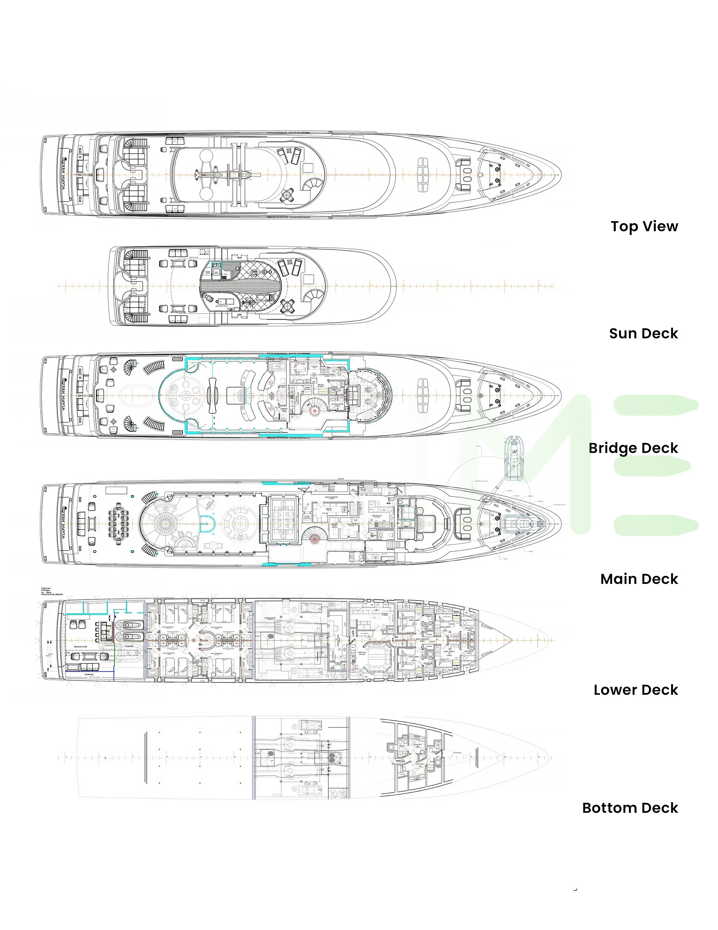 Request plans that include the layout of staterooms, guest areas, and outdoor spaces, as well as crew quarters and work areas.