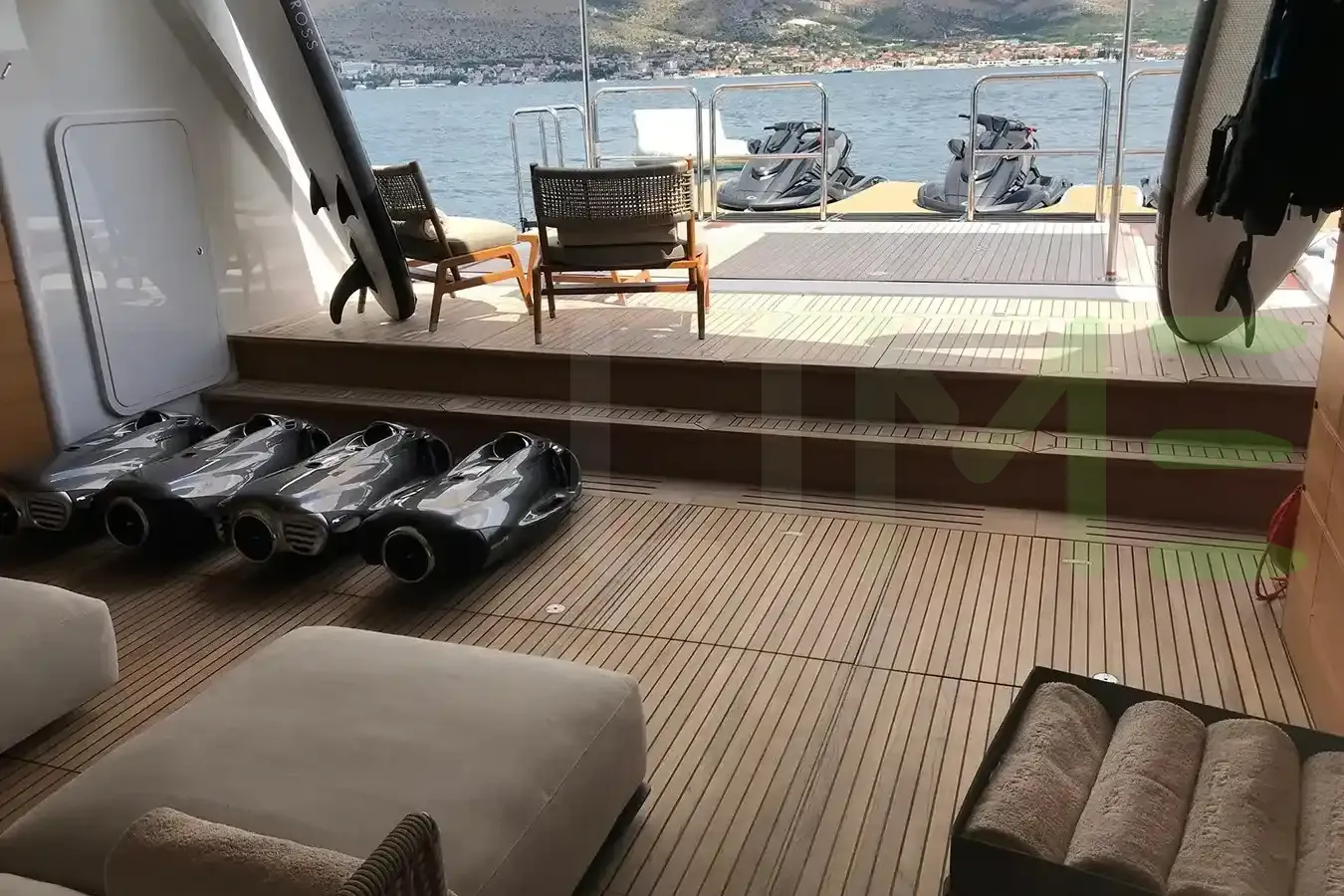 Indulge in the opulent comforts of spacious lounges, gourmet dining areas, and elegantly appointed staterooms. Savor the breathtaking views from the open decks, unwind on a sun lounge, or stay active in the water. For adventure enthusiasts, the R JUNIORS motoryacht is equipped with an array of water toys. Dive into the crystal-clear waters for a refreshing swim, explore hidden coves, or experience the thrill of wakeboarding. With attentive crew members catering to your every need, a yacht charter promises an unforgettable blend of relaxation, luxury, and adventure.