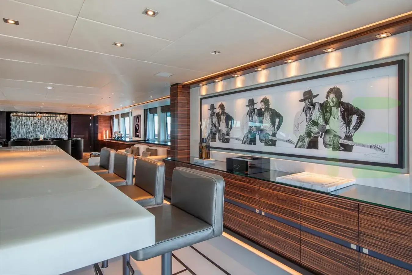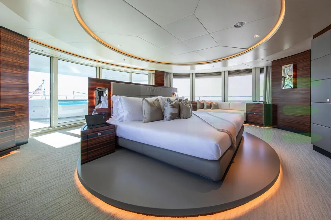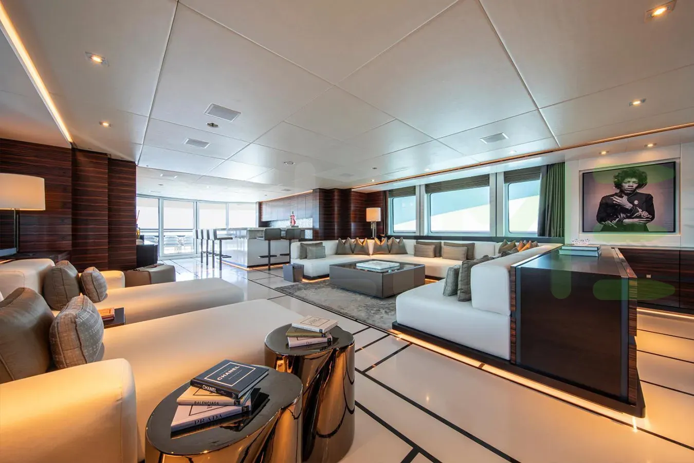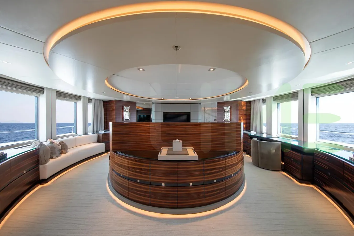 With a gross tonnage of 637, the R JUNIORS yacht for charter provides ample interior space for enjoyment. R JUNIORS offers accommodations for up to 12 guests in 6 lavishly appointed staterooms. She can also carry up to 10 crew onboard, including the Captain, to ensure a relaxed luxury yacht charter experience. The interior design by Ausberg Interiors exudes a sense of luxury, seamlessly blending comfort with style.