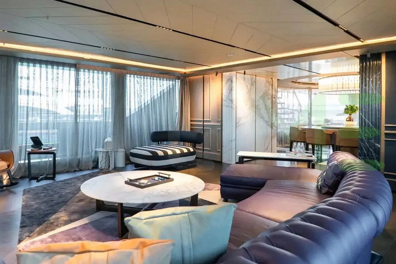 With a gross tonnage of 499, the RAJA² yacht for charter provides ample interior space for enjoyment. RAJA² offers accommodations for up to 12 guests . She can also carry up to 11 crew onboard, including the Captain, to ensure a relaxed luxury yacht charter experience. The interior design by Gian Marco Companino Design exudes a sense of luxury, seamlessly blending comfort with style.