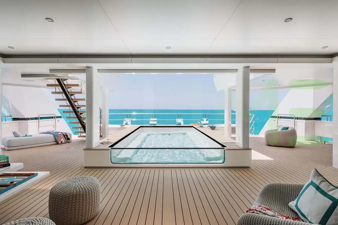 Built by Silver Yachts in Australia, this stunning yacht boasts a length of 117' 9" (35.9m), a beam of 44' 7" (13.6m), and a draft of 6' 2" (1.87m).