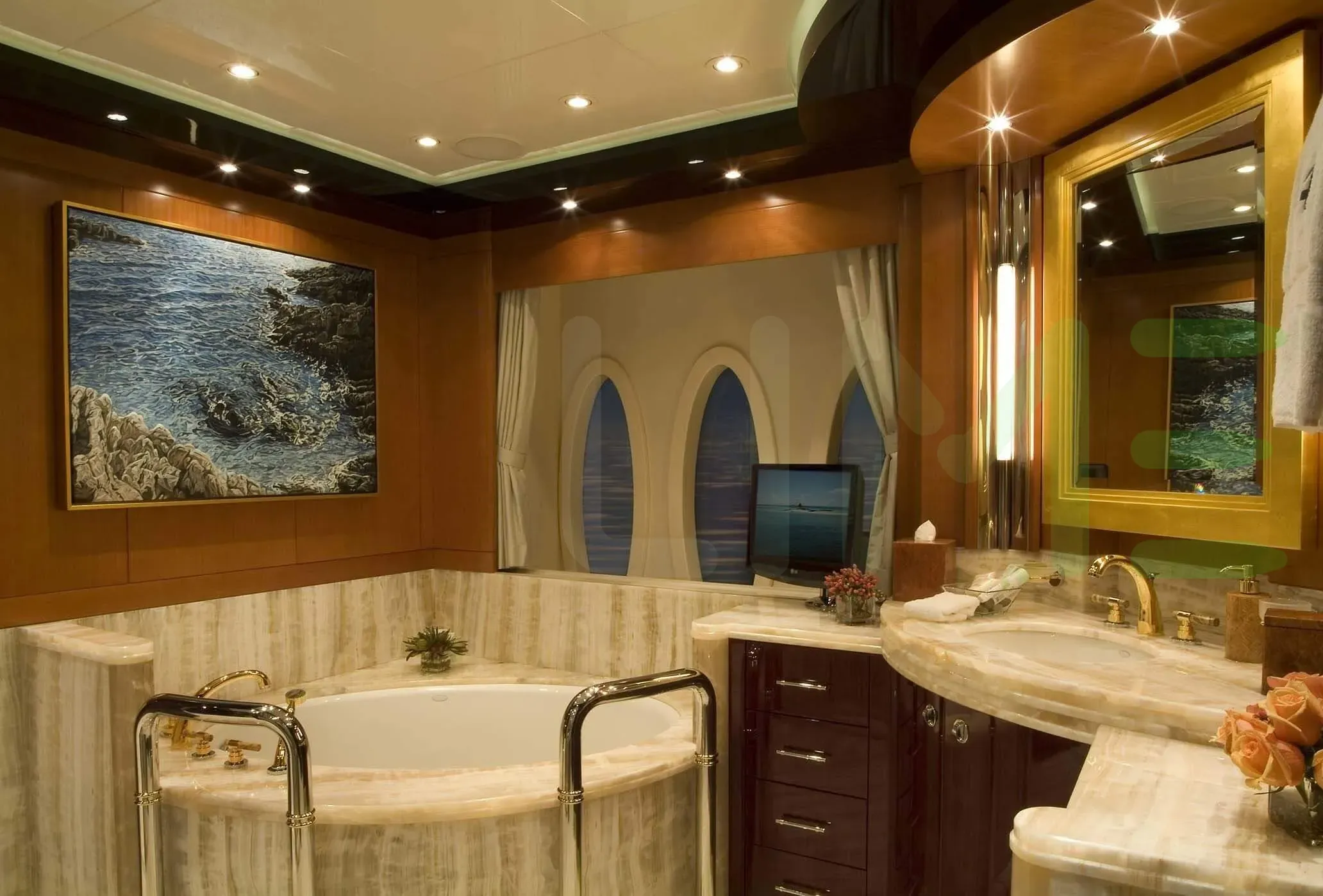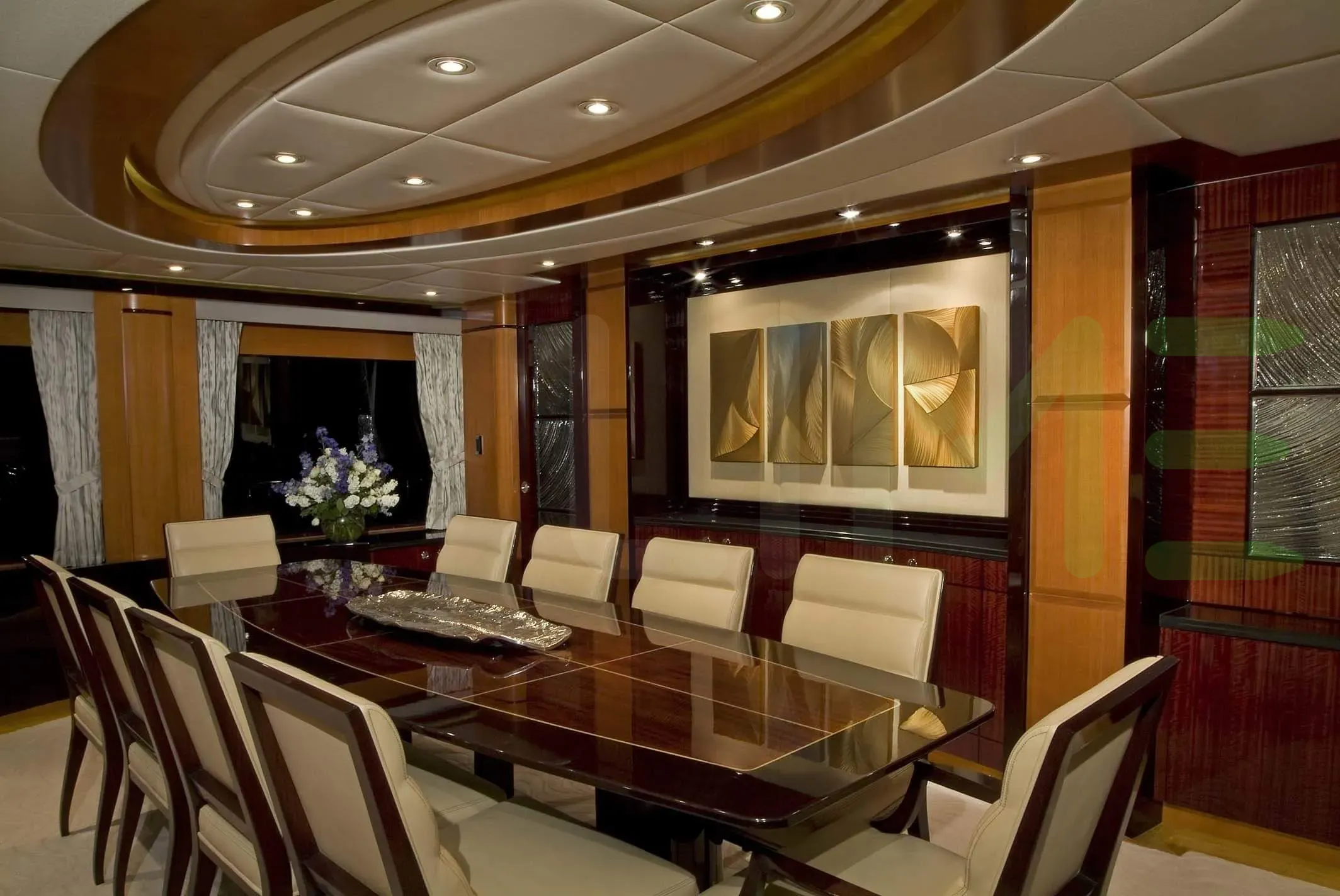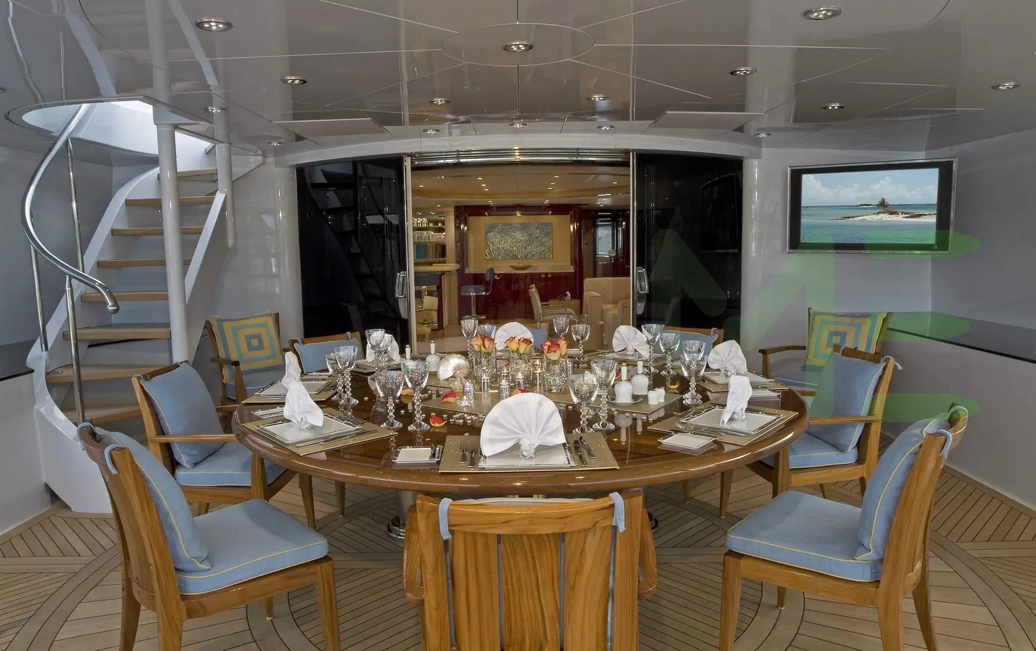 With a gross tonnage of 476, the REEF CHIEF yacht for charter provides ample interior space for enjoyment. REEF CHIEF offers accommodations for up to 11 guests in 5 lavishly appointed staterooms. She can also carry up to 10 crew onboard, including the Captain, to ensure a relaxed luxury yacht charter experience. The interior design by Glade Johnson Design, Inc. exudes a sense of luxury, seamlessly blending comfort with style.