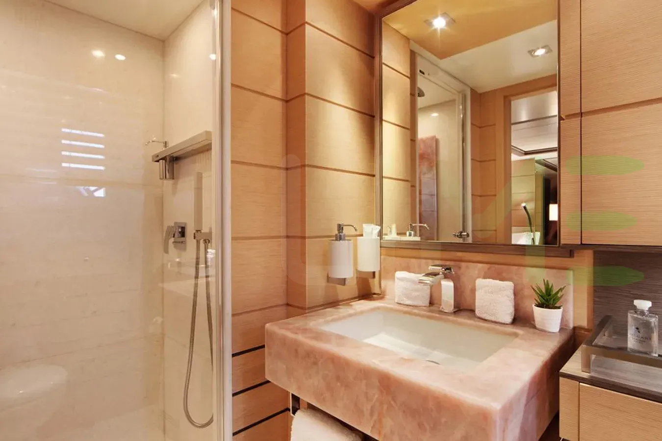 Her features include a gym, deck jacuzzi, WiFi and air conditioning.