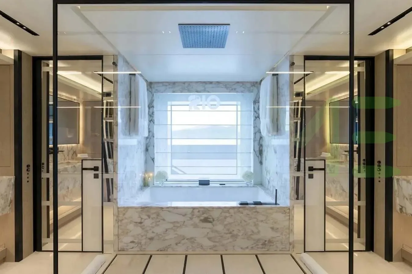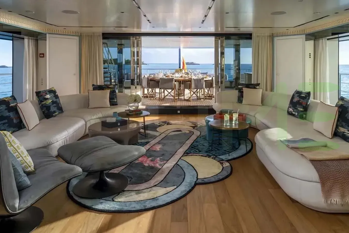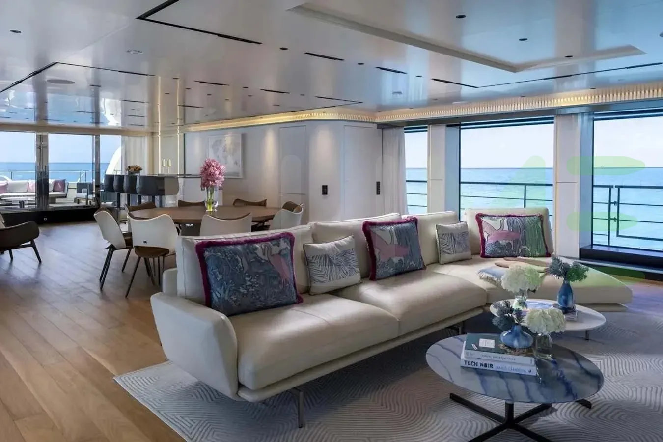 With a gross tonnage of 1,218, the RIO yacht for charter provides ample interior space for enjoyment. RIO offers accommodations for up to 12 guests in 6 lavishly appointed staterooms. She can also carry up to 15 crew onboard, including the Captain, to ensure a relaxed luxury yacht charter experience. The interior design by Pulina Exclusive Interiors exudes a sense of luxury, seamlessly blending comfort with style.