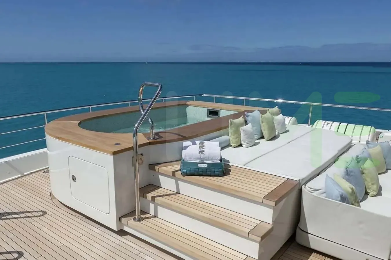 Her features include an elevator, underwater lights, beach club, gym, deck jacuzzi, WiFi and air conditioning.