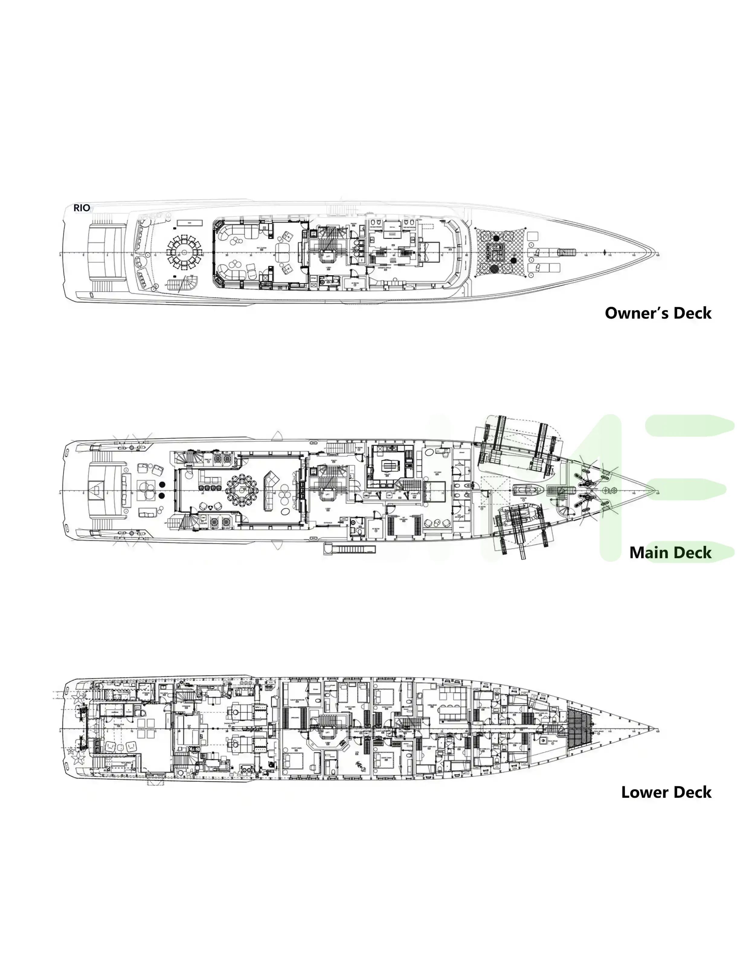 Request plans that include the layout of staterooms, guest areas, and outdoor spaces, as well as crew quarters and work areas.