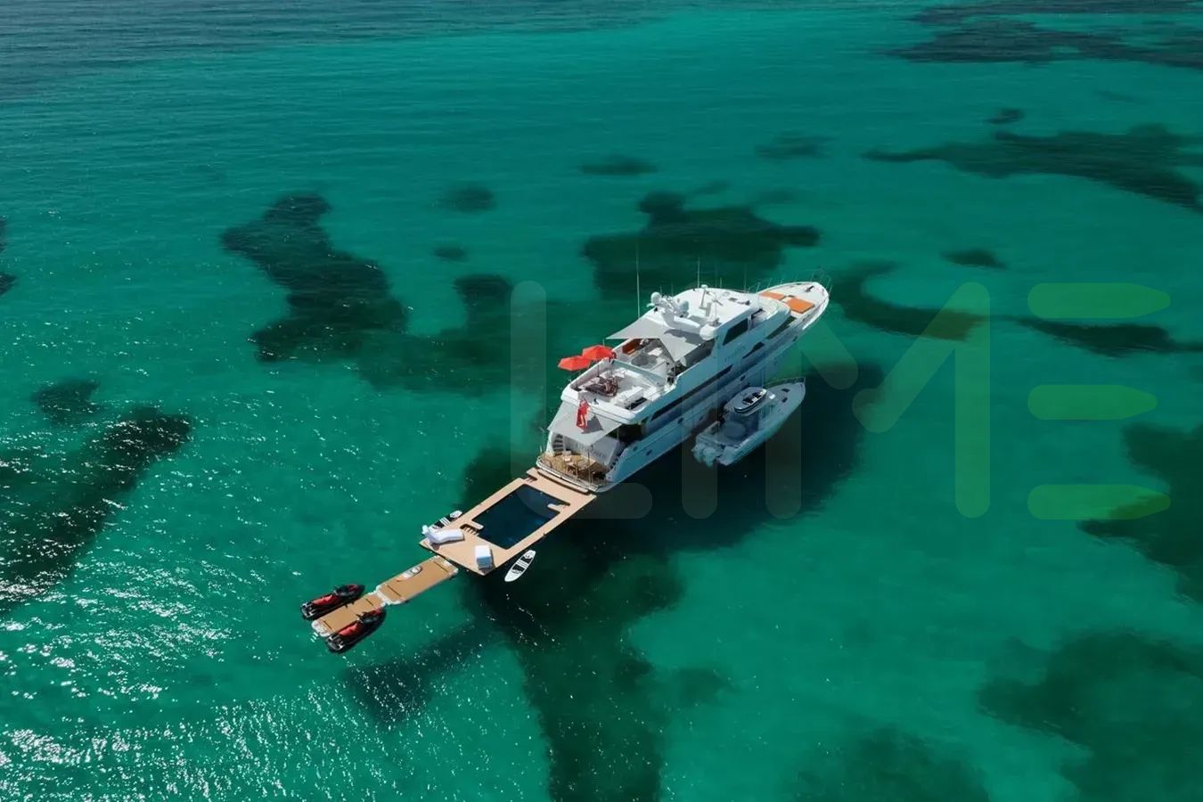 Indulge in the opulent comforts of spacious lounges, gourmet dining areas, and elegantly appointed staterooms. Savor the breathtaking views from the open decks, unwind on a sun lounge, or stay active in the water. For adventure enthusiasts, the ROBINS NEST II motoryacht is equipped with an array of water toys. Dive into the crystal-clear waters for a refreshing swim, explore hidden coves, or experience the thrill of wakeboarding. With attentive crew members catering to your every need, a yacht charter promises an unforgettable blend of relaxation, luxury, and adventure.