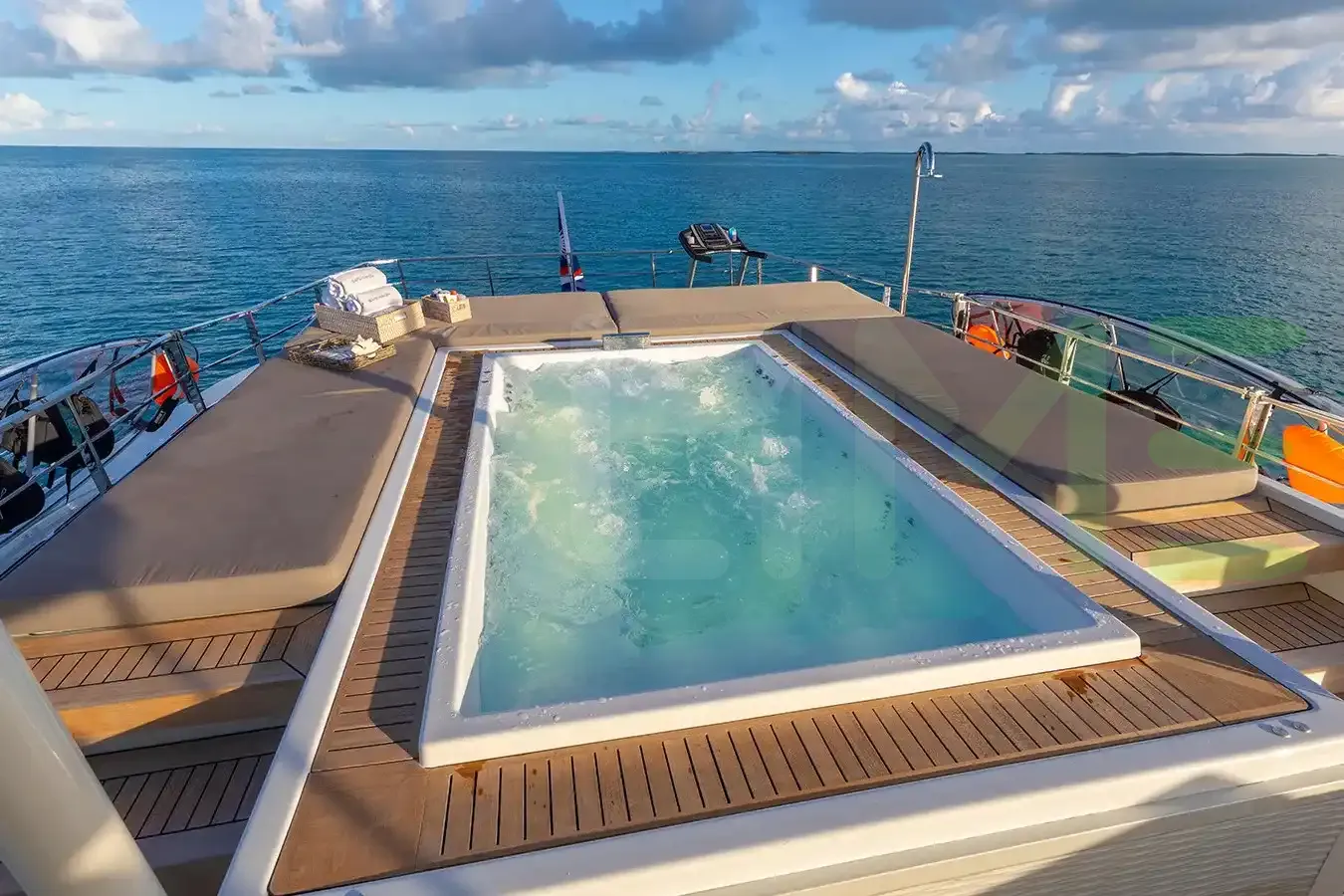 The exterior, designed by Luca Dini Design & Architecture, captures your attention with beautiful lines and impeccable craftsmanship. Whether you're lounging on the spacious decks or enjoying water sports in a secluded anchorage, the SAFE HAVEN yacht for charter, built of Aluminium, offers a wealth of opportunities for relaxation and adventure.