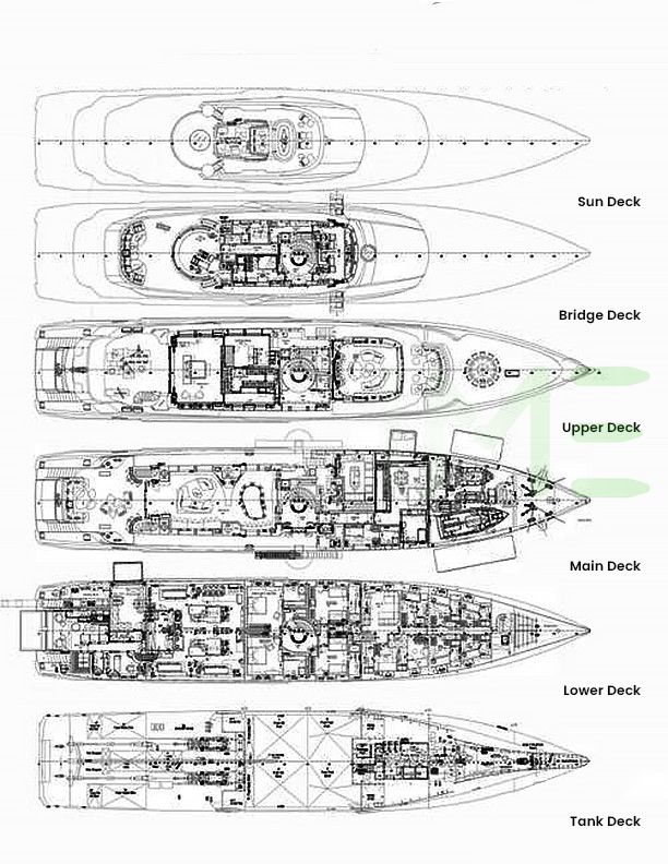 Request plans that include the layout of staterooms, guest areas, and outdoor spaces, as well as crew quarters and work areas.