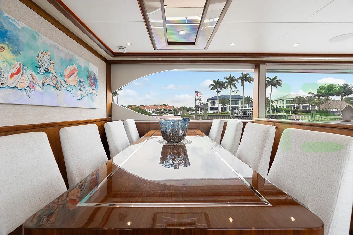 With a gross tonnage of 147, the SANIBELLA yacht for charter provides ample interior space for enjoyment. SANIBELLA offers accommodations for up to 8 guests . She can also carry up to 3 crew onboard, including the Captain, to ensure a relaxed luxury yacht charter experience. The interior design by Evan K Marshall exudes a sense of luxury, seamlessly blending comfort with style.