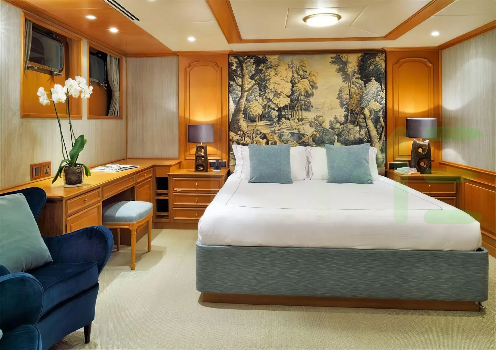 With a gross tonnage of 847, the SANOO yacht for charter provides ample interior space for enjoyment. SANOO offers accommodations for up to 16 guests in 8 lavishly appointed staterooms. She can also carry up to 20 crew onboard, including the Captain, to ensure a relaxed luxury yacht charter experience. The interior design by Larvor exudes a sense of luxury, seamlessly blending comfort with style.