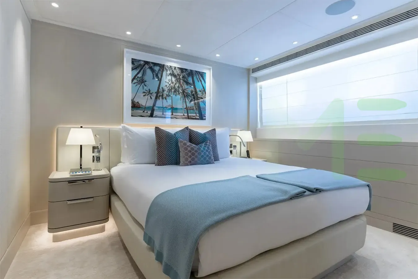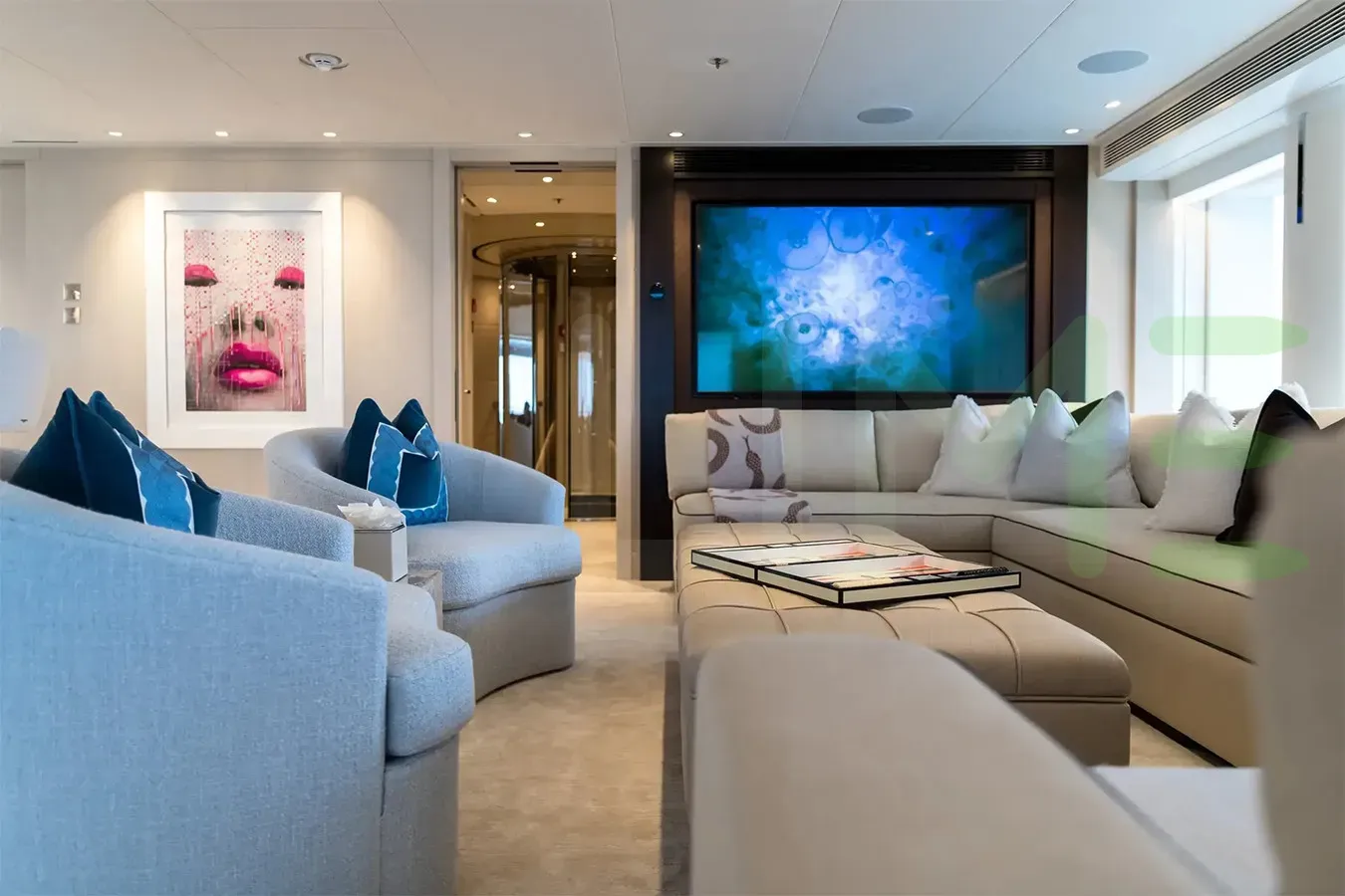 With a gross tonnage of 779, the SANTOSHA yacht for charter provides ample interior space for enjoyment. SANTOSHA offers accommodations for up to 12 guests . She can also carry up to 13 crew onboard, including the Captain, to ensure a relaxed luxury yacht charter experience. The interior design by Harrison Eidsgaard exudes a sense of luxury, seamlessly blending comfort with style.