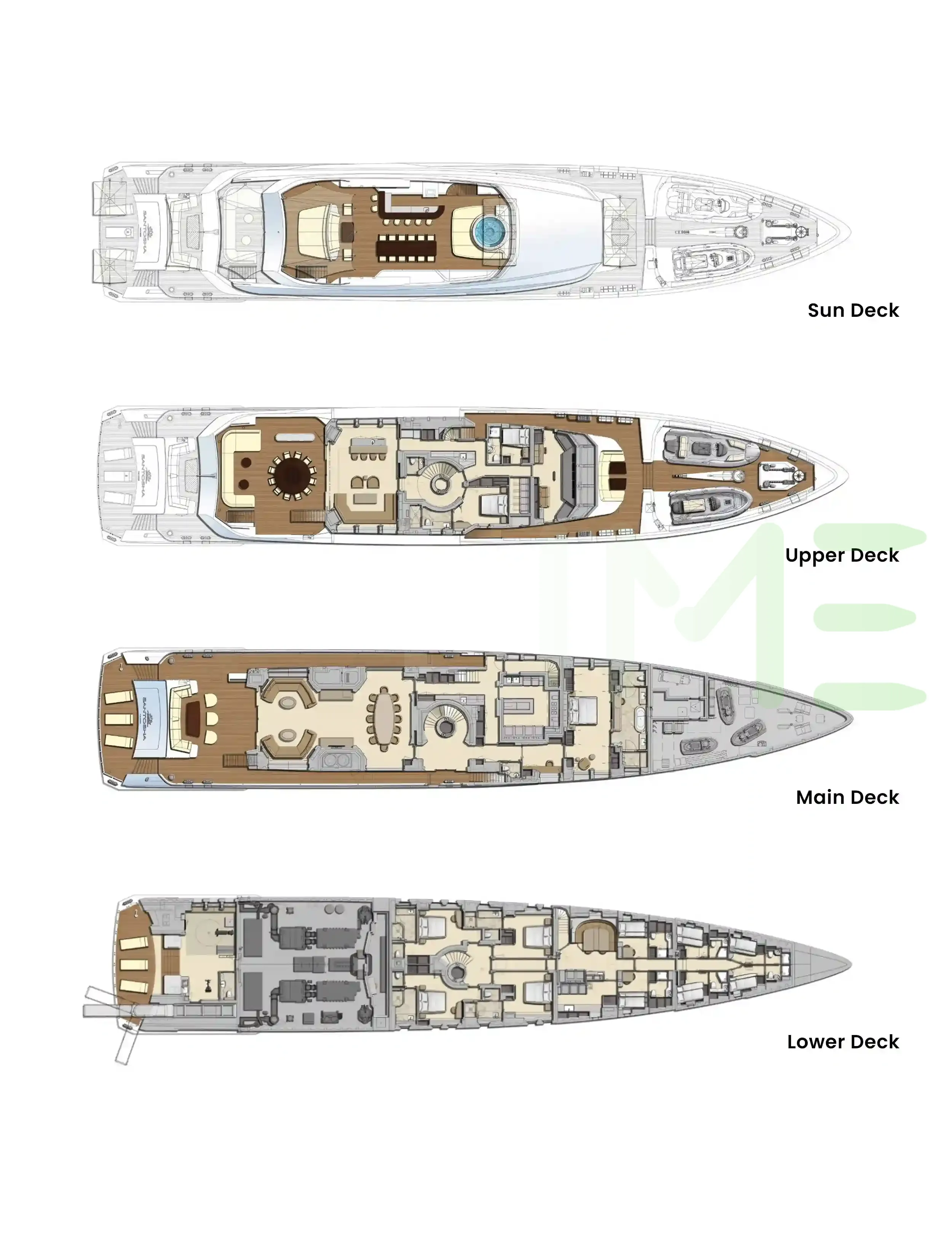 Request plans that include the layout of staterooms, guest areas, and outdoor spaces, as well as crew quarters and work areas.