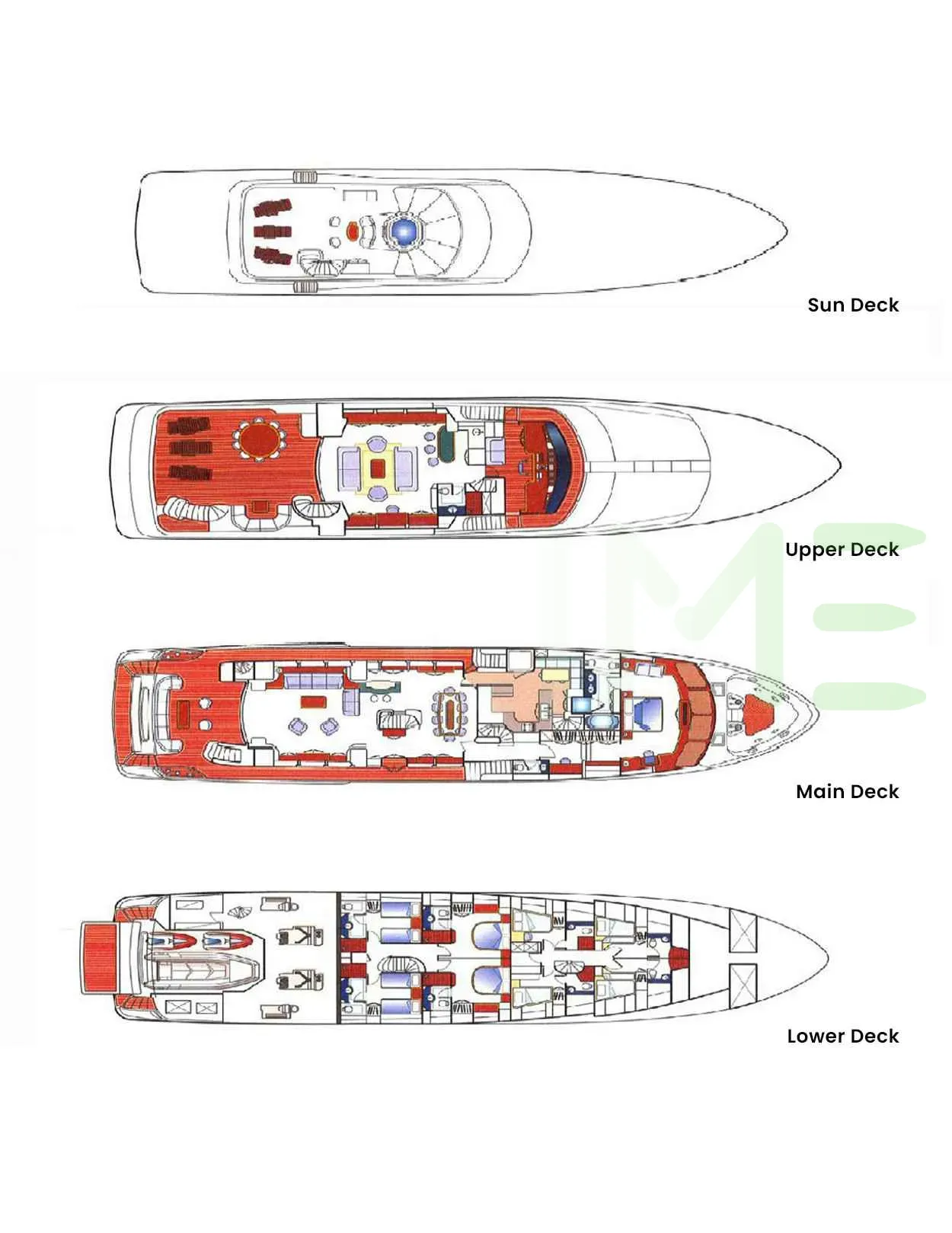 Request plans that include the layout of staterooms, guest areas, and outdoor spaces, as well as crew quarters and work areas.