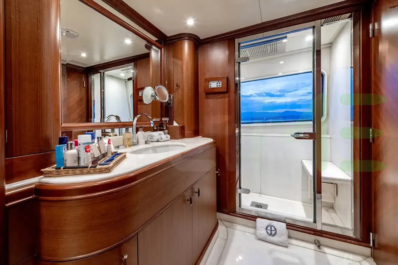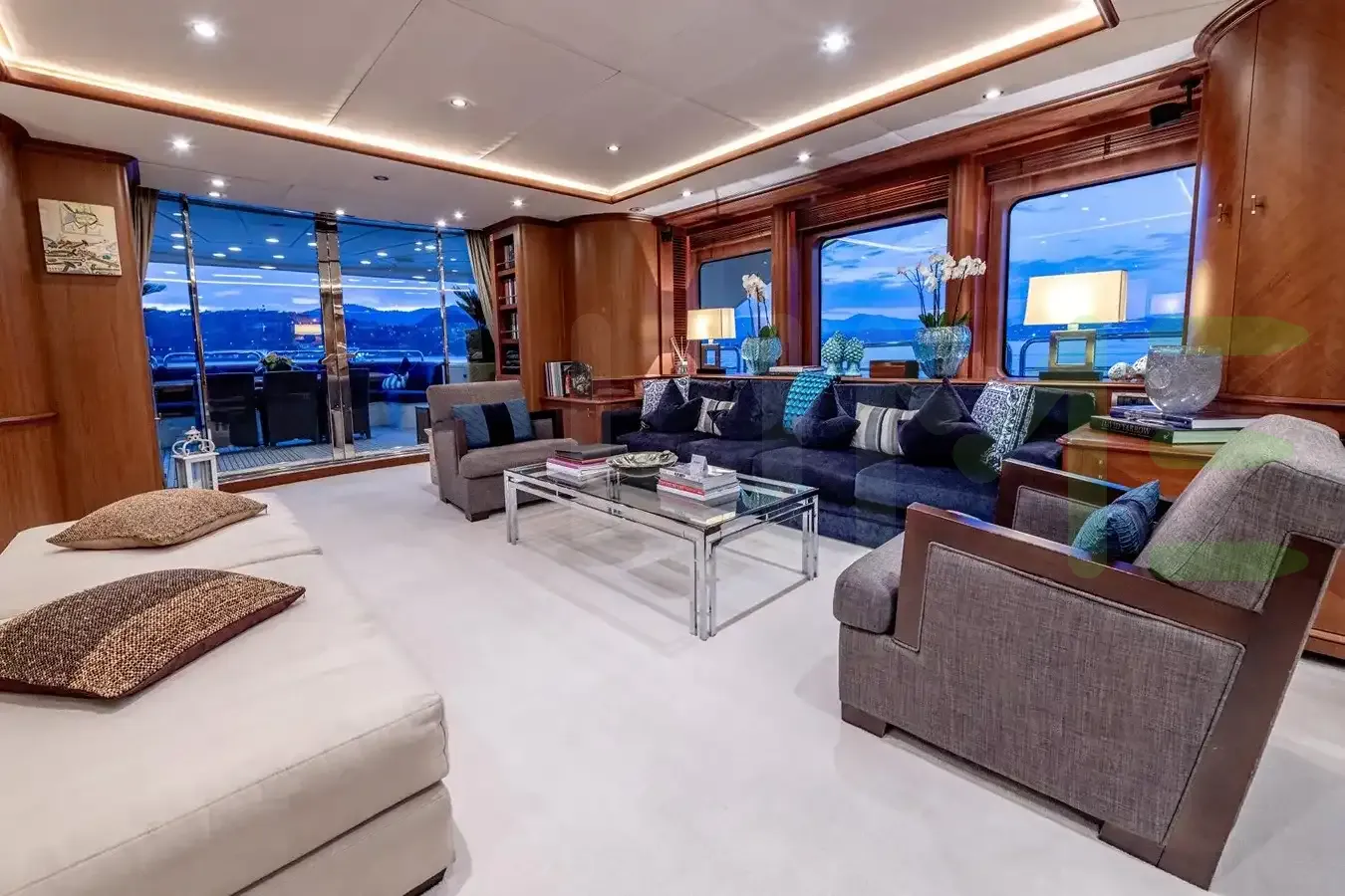 With a gross tonnage of 299, the SEA BLUE'Z yacht for charter provides ample interior space for enjoyment. SEA BLUE'Z offers accommodations for up to 10 guests in 5 lavishly appointed staterooms. She can also carry up to 8 crew onboard, including the Captain, to ensure a relaxed luxury yacht charter experience. The interior design by Zuretti Interior Design exudes a sense of luxury, seamlessly blending comfort with style.