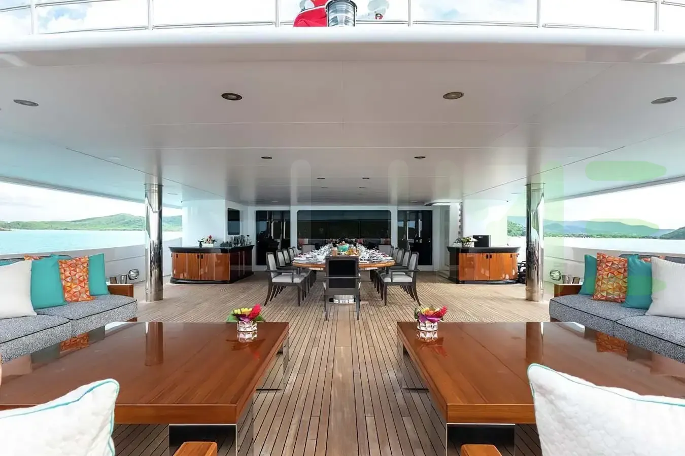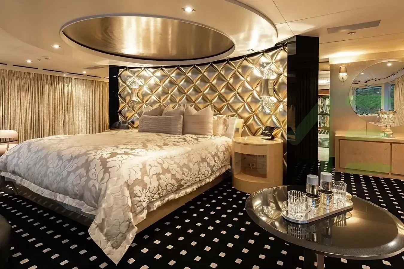 With a gross tonnage of 2,240, the SEA PEARL yacht for charter provides ample interior space for enjoyment. SEA PEARL offers accommodations for up to 15 guests in 6 lavishly appointed staterooms. She can also carry up to 25 crew onboard, including the Captain, to ensure a relaxed luxury yacht charter experience. The interior design by J.W. HARRIS INC. exudes a sense of luxury, seamlessly blending comfort with style.