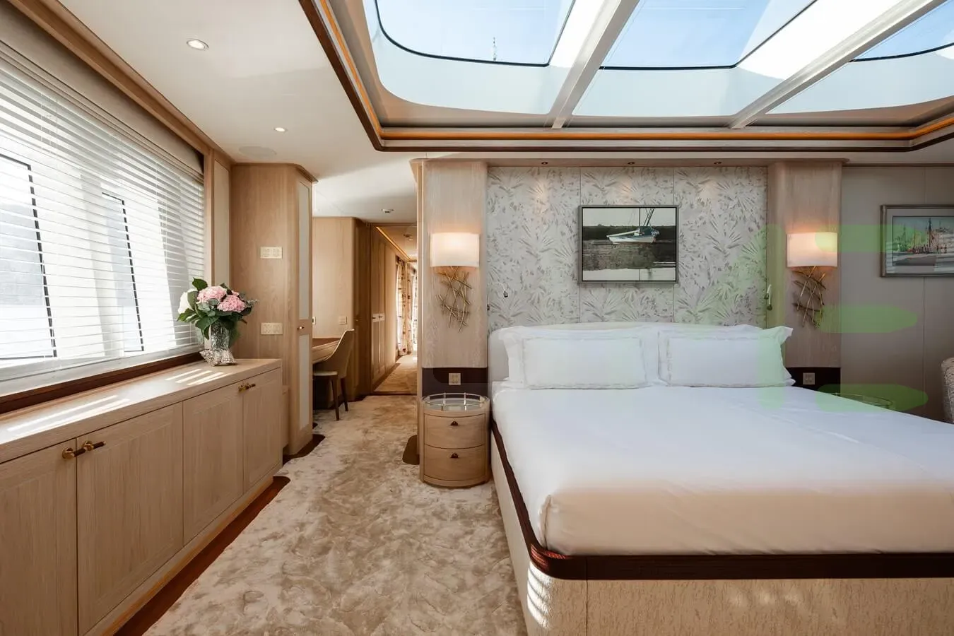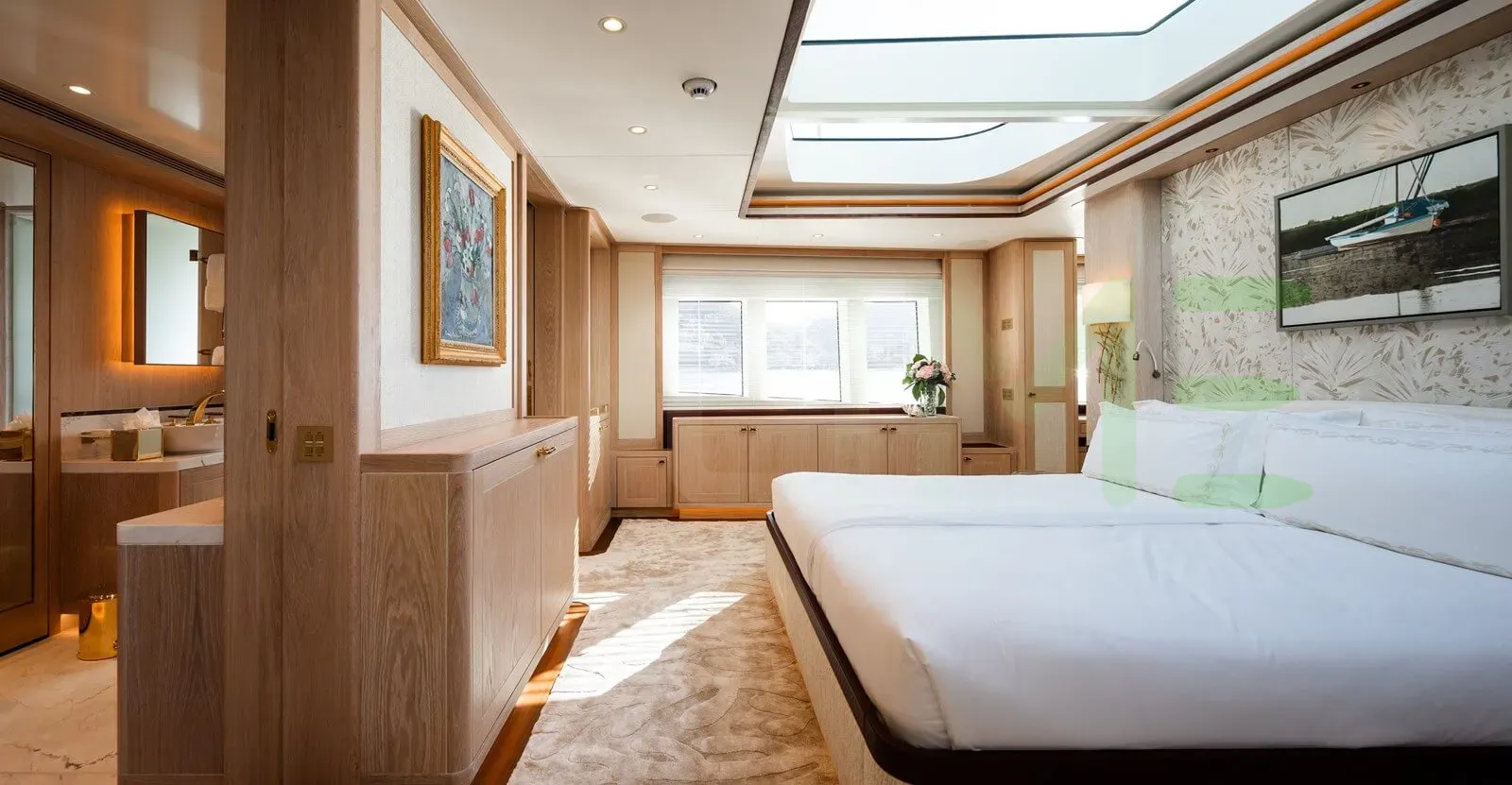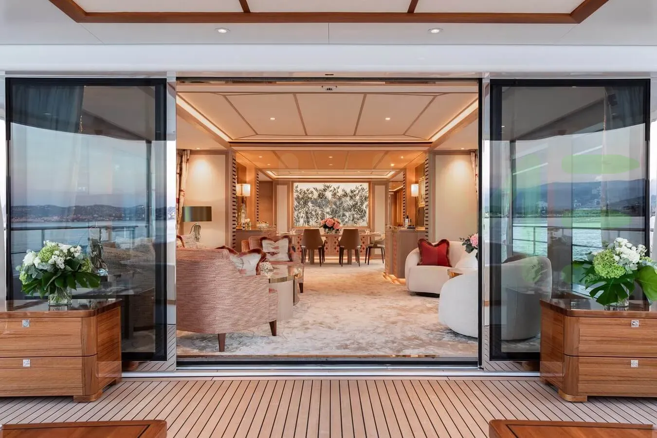 With a gross tonnage of 297, the SEAFLOWER yacht for charter provides ample interior space for enjoyment. SEAFLOWER offers accommodations for up to 10 guests in 5 lavishly appointed staterooms. She can also carry up to 6 crew onboard, including the Captain, to ensure a relaxed luxury yacht charter experience. The interior design by Vickers Studio exudes a sense of luxury, seamlessly blending comfort with style.