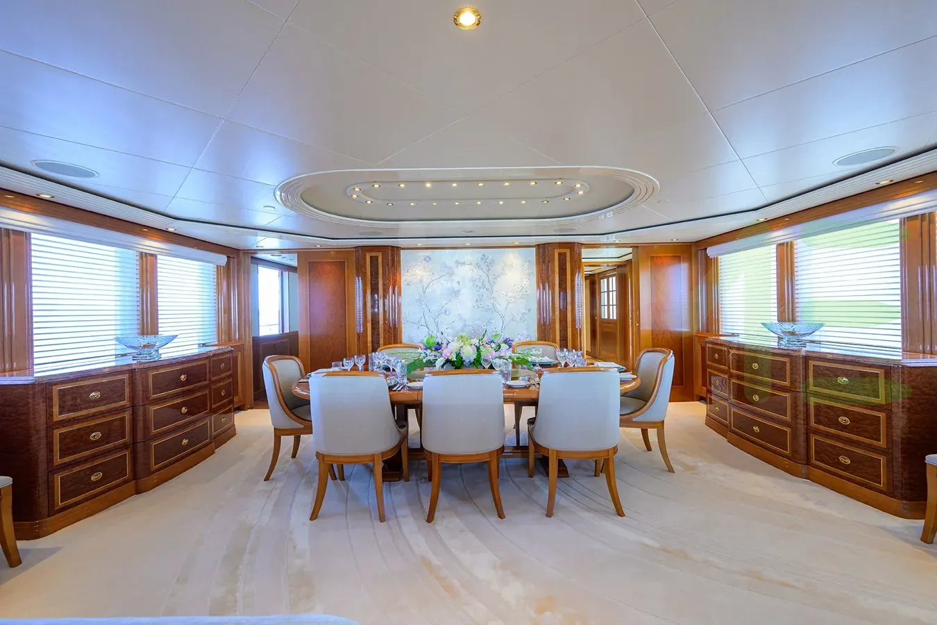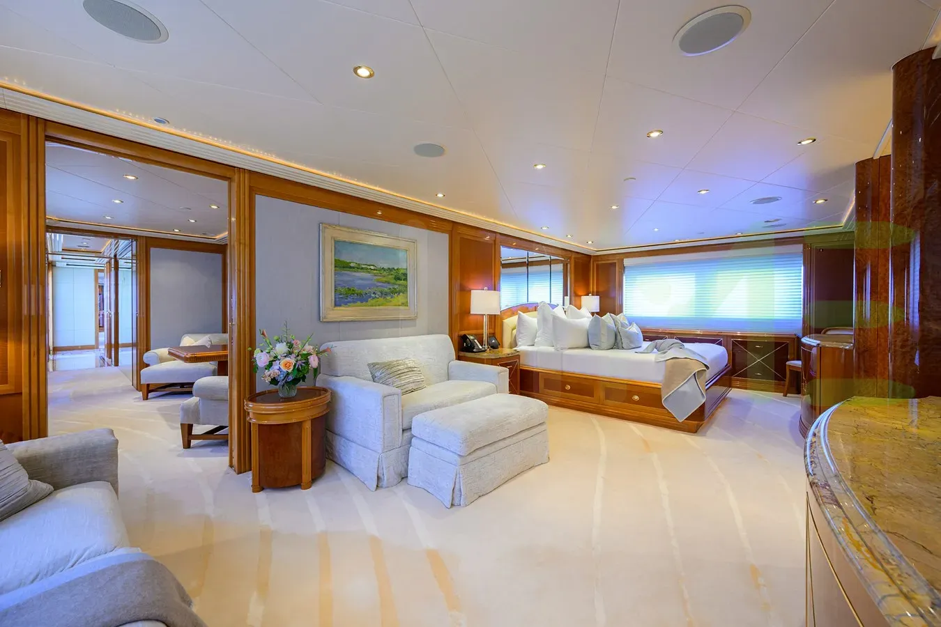 With a gross tonnage of 499, the SECOND LOVE yacht for charter provides ample interior space for enjoyment. SECOND LOVE offers accommodations for up to 12 guests in 6 lavishly appointed staterooms. She can also carry up to 10 crew onboard, including the Captain, to ensure a relaxed luxury yacht charter experience. The interior design by Donald Starkey Designs exudes a sense of luxury, seamlessly blending comfort with style.