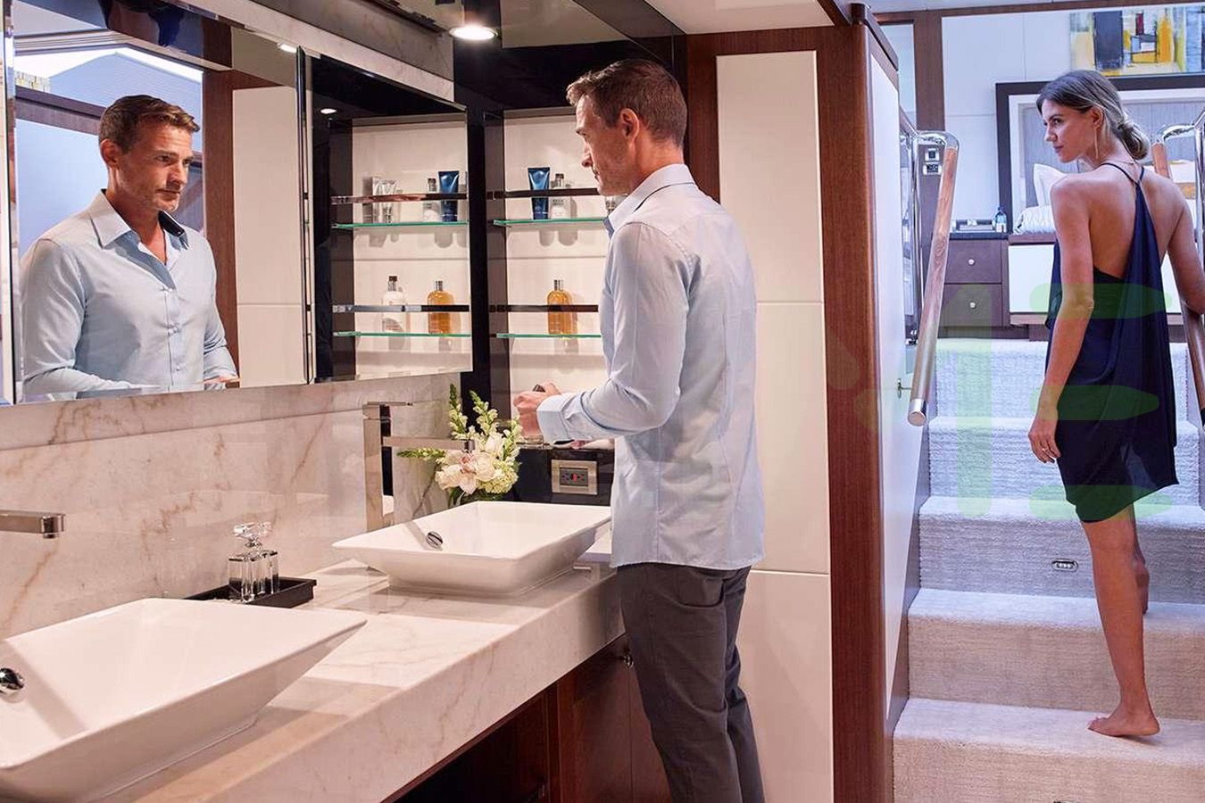 With a gross tonnage of 173, the SELAH yacht for charter provides ample interior space for enjoyment. SELAH offers accommodations for up to 8 guests in 4 lavishly appointed staterooms. She can also carry up to 5 crew onboard, including the Captain, to ensure a relaxed luxury yacht charter experience. The interior design by Evan K Marshall exudes a sense of luxury, seamlessly blending comfort with style.