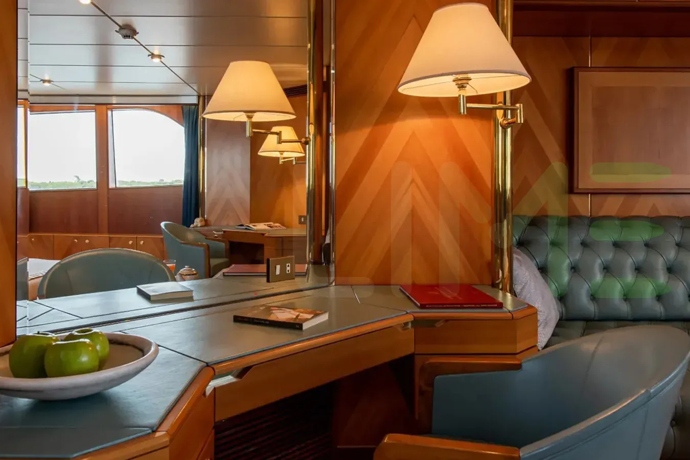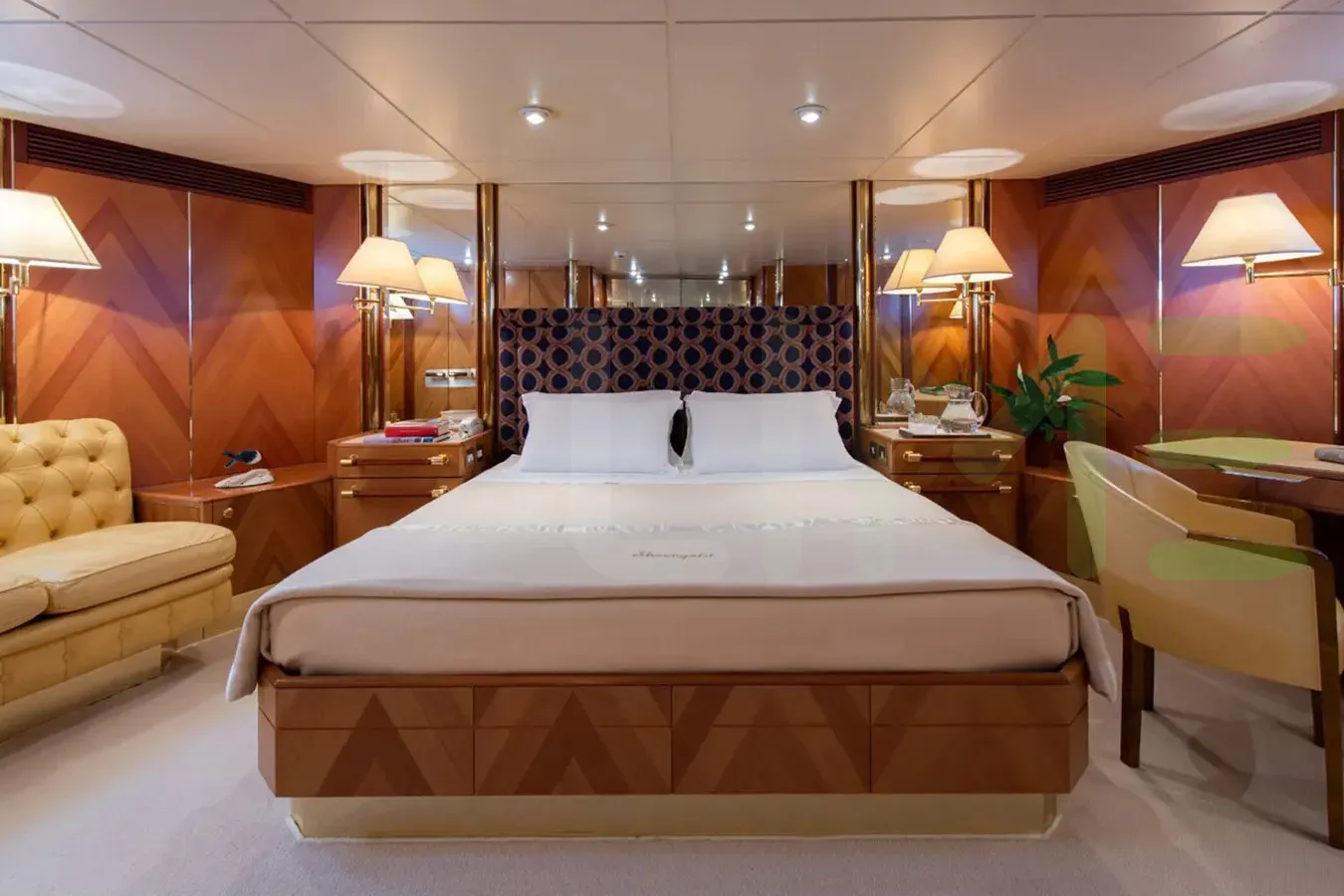 With a gross tonnage of 387, the SHEERGOLD yacht for charter provides ample interior space for enjoyment. SHEERGOLD offers accommodations for up to 8 guests in 4 lavishly appointed staterooms. She can also carry up to 9 crew onboard, including the Captain, to ensure a relaxed luxury yacht charter experience. The interior design by Jon Bannenberg Ltd exudes a sense of luxury, seamlessly blending comfort with style.