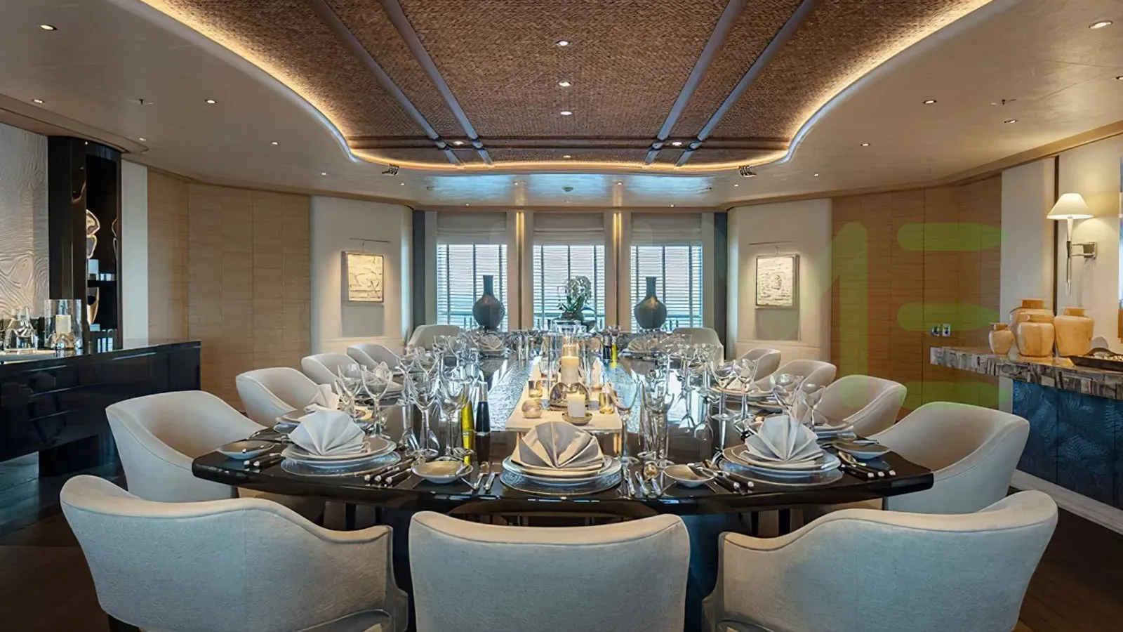 With a gross tonnage of 2,946, the SHODAN yacht for charter provides ample interior space for enjoyment. SHODAN offers accommodations for up to 22 guests in 9 lavishly appointed staterooms. She can also carry up to 27 crew onboard, including the Captain, to ensure a relaxed luxury yacht charter experience. The interior design by Terence Disdale Design exudes a sense of luxury, seamlessly blending comfort with style.