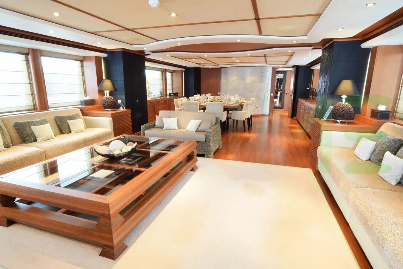 With a gross tonnage of 495, the SIROCCO yacht for charter provides ample interior space for enjoyment. SIROCCO offers accommodations for up to 12 guests in 6 lavishly appointed staterooms. She can also carry up to 9 crew onboard, including the Captain, to ensure a relaxed luxury yacht charter experience. The interior design by Omega Architects exudes a sense of luxury, seamlessly blending comfort with style.