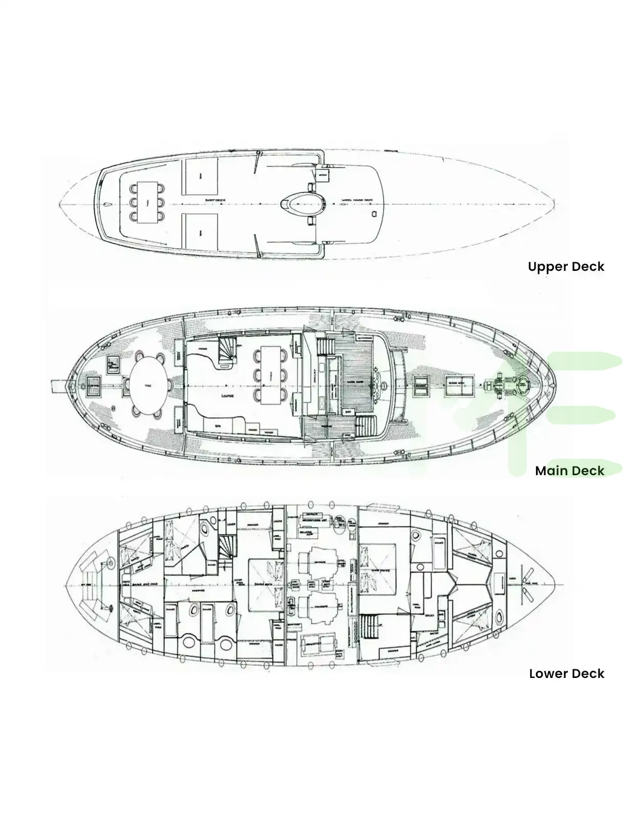 Request plans that include the layout of staterooms, guest areas, and outdoor spaces, as well as crew quarters and work areas.