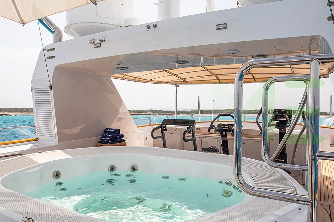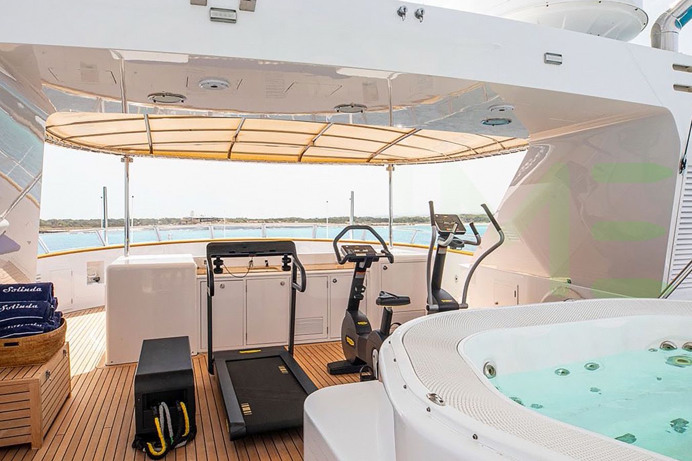 Keeping comfortable and entertained on Solinda is easy thanks to the available amenities, particularly a gym with all the latest equipment to maintain your fitness routine. Soak up the bubbles in style in the deck jacuzzi.