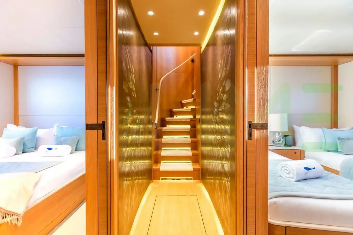 With a gross tonnage of 315, the SOLIS yacht for charter provides ample interior space for enjoyment. SOLIS offers accommodations for up to 8 guests in 4 lavishly appointed staterooms. She can also carry up to 6 crew onboard, including the Captain, to ensure a relaxed luxury yacht charter experience. The interior design by Claydon Reeves exudes a sense of luxury, seamlessly blending comfort with style.