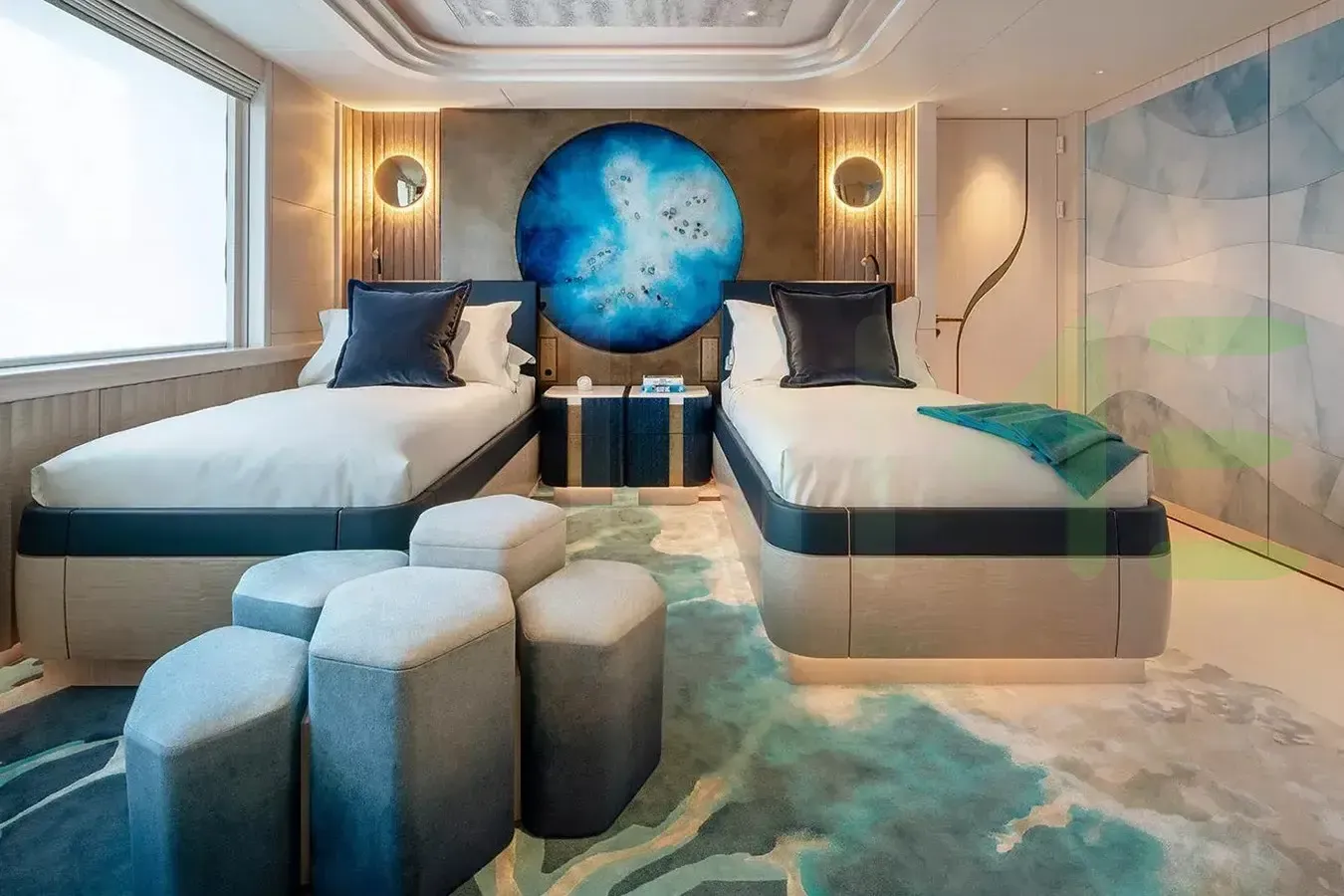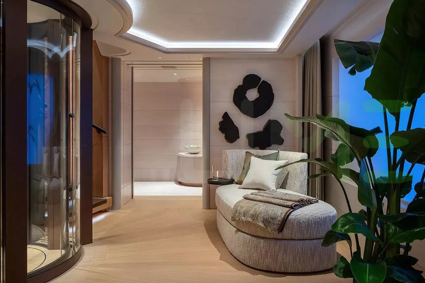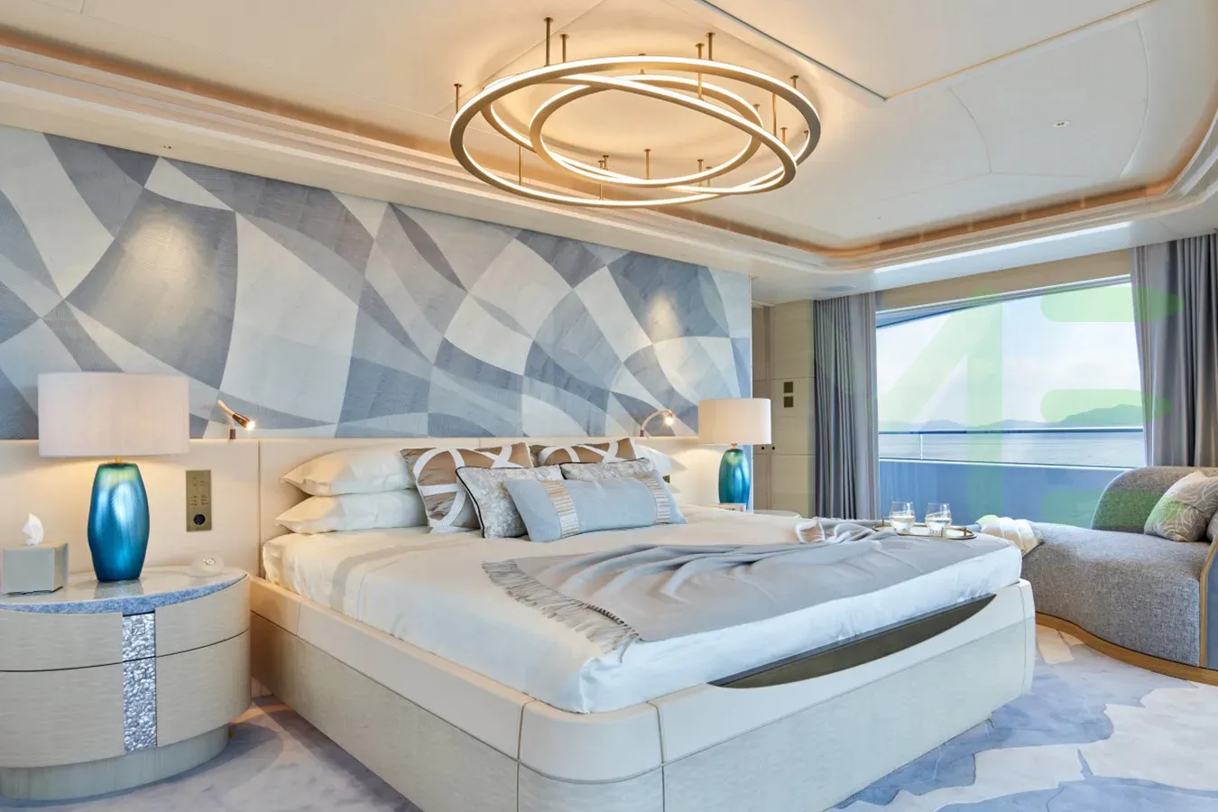 With a gross tonnage of 1,200, the SPARTA yacht for charter provides ample interior space for enjoyment. SPARTA offers accommodations for up to 12 guests in 6 lavishly appointed staterooms. She can also carry up to 14 crew onboard, including the Captain, to ensure a relaxed luxury yacht charter experience. The interior design by Winch Design exudes a sense of luxury, seamlessly blending comfort with style.