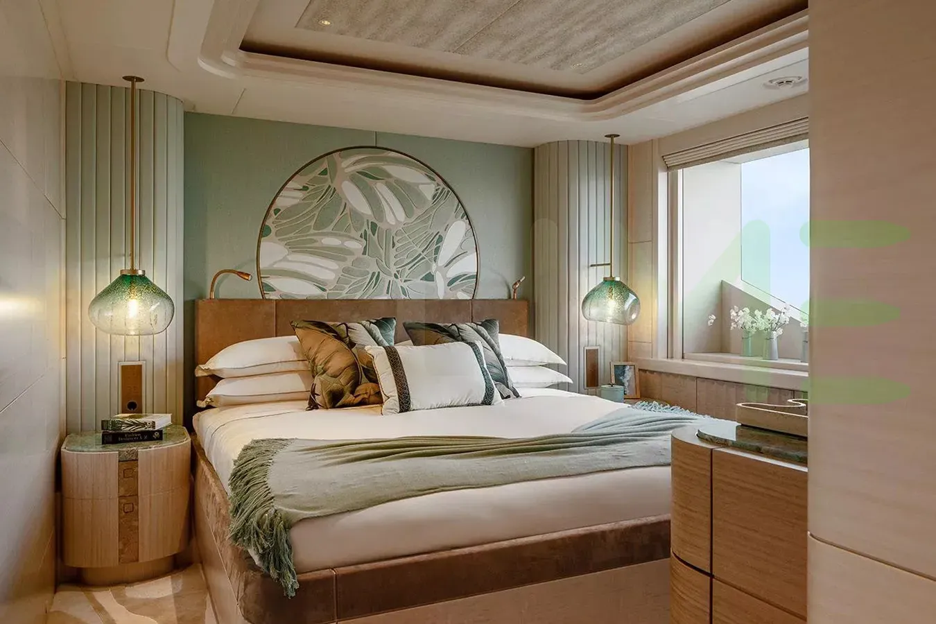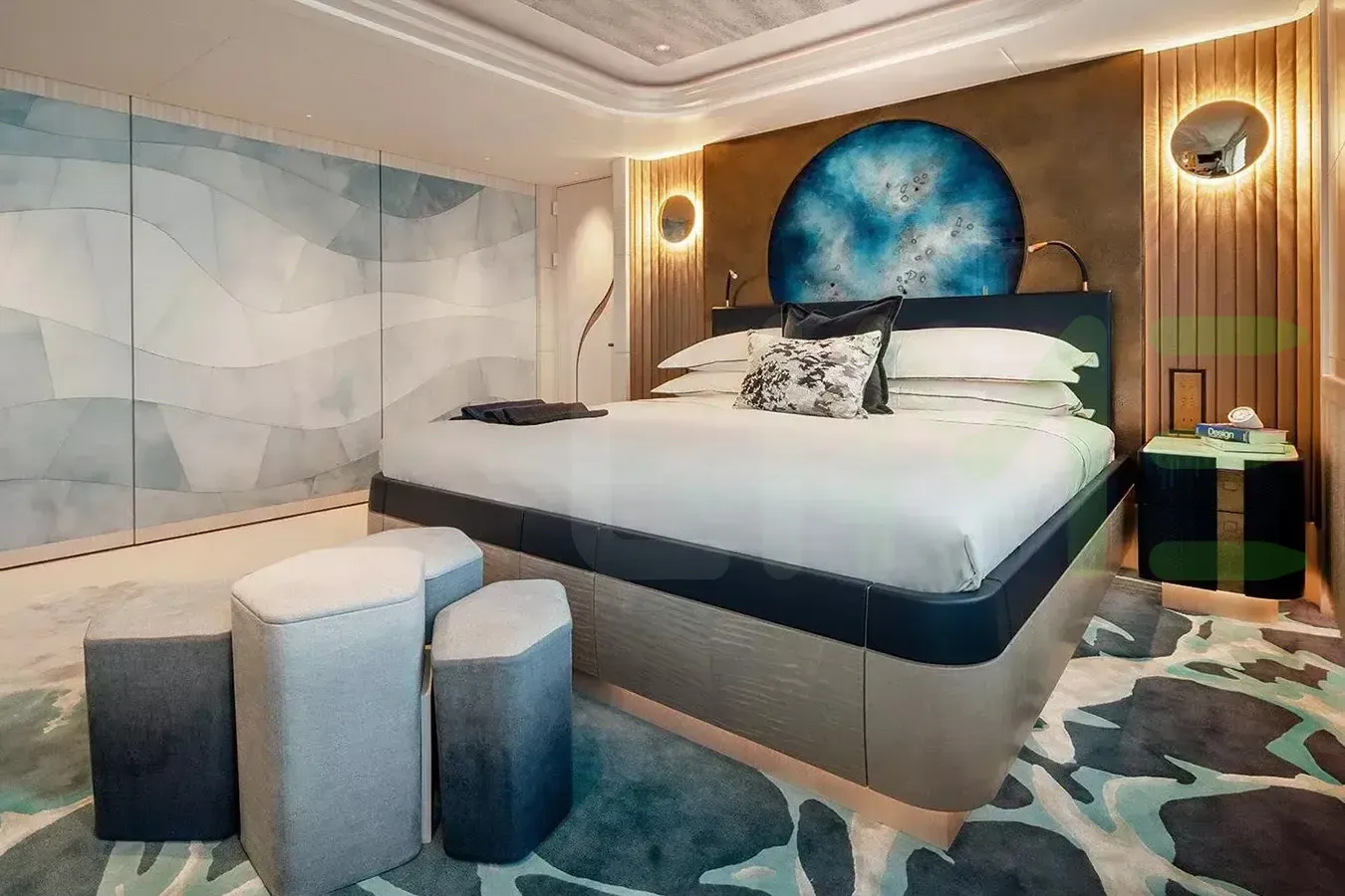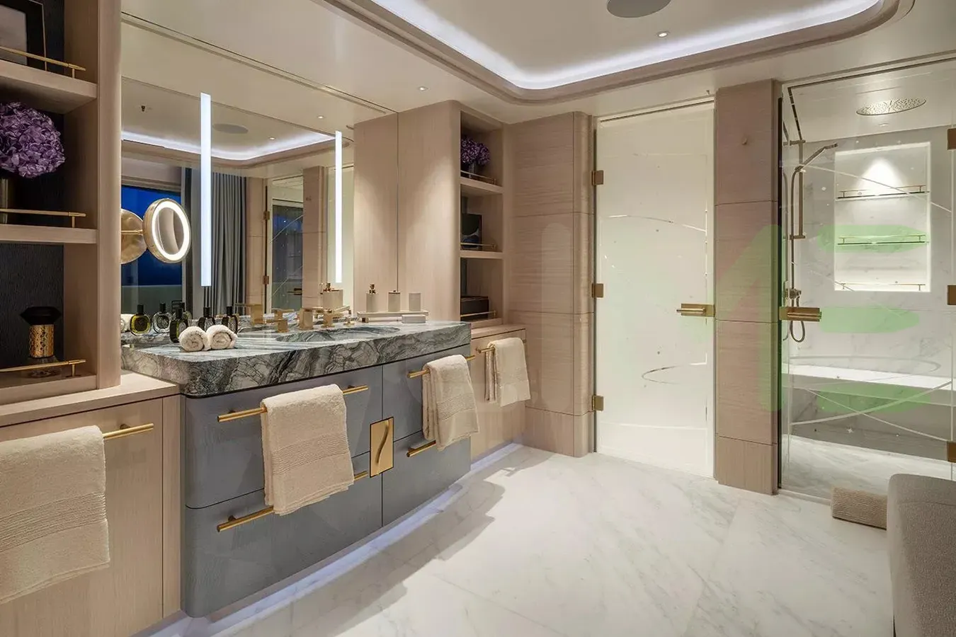 With a gross tonnage of 1,200, the SPARTA yacht for charter provides ample interior space for enjoyment. SPARTA offers accommodations for up to 12 guests in 6 lavishly appointed staterooms. She can also carry up to 14 crew onboard, including the Captain, to ensure a relaxed luxury yacht charter experience. The interior design by Winch Design exudes a sense of luxury, seamlessly blending comfort with style.