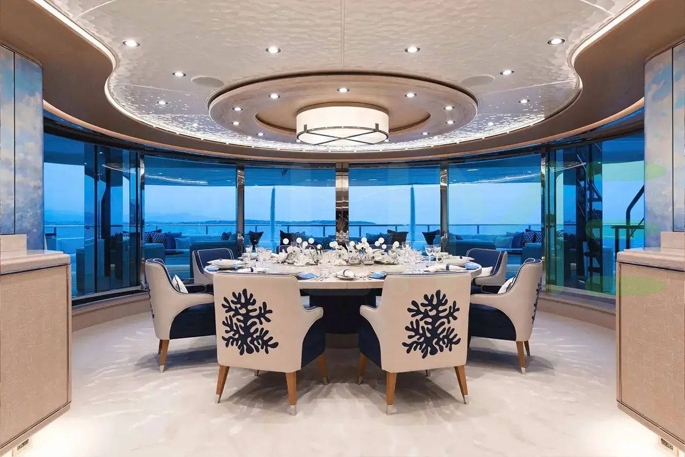 With a gross tonnage of 2,218, the STARBURST IV yacht for charter provides ample interior space for enjoyment. STARBURST IV offers accommodations for up to 12 guests in 8 lavishly appointed staterooms. She can also carry up to 25 crew onboard, including the Captain, to ensure a relaxed luxury yacht charter experience. The interior design by Winch Design exudes a sense of luxury, seamlessly blending comfort with style.