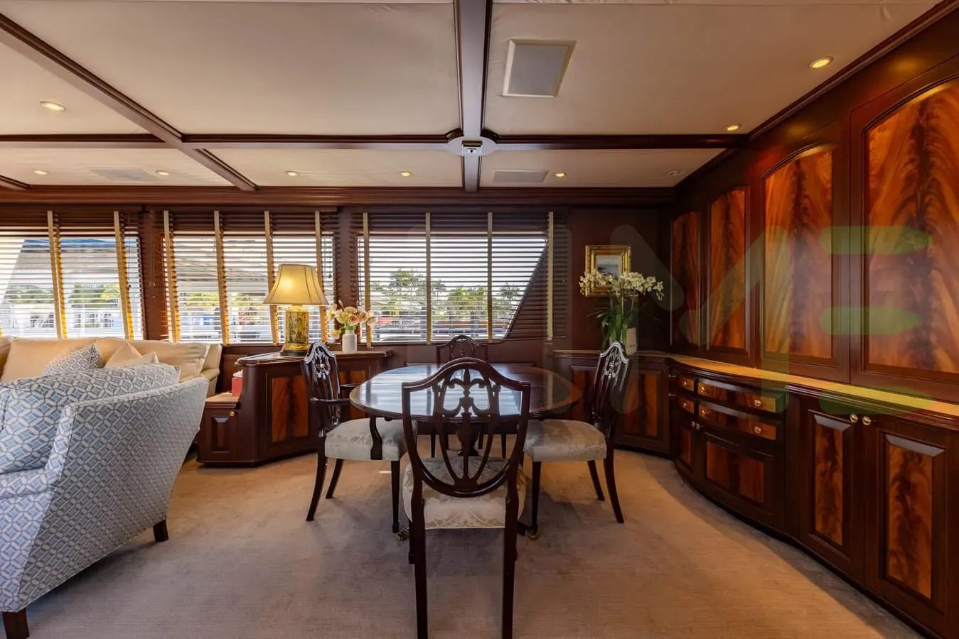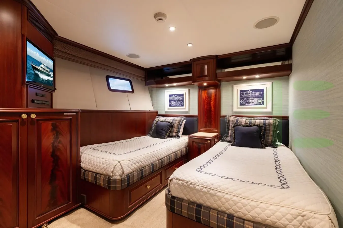 With a gross tonnage of 198, the STARLIGHT yacht for charter provides ample interior space for enjoyment. STARLIGHT offers accommodations for up to 6 guests in 3 lavishly appointed staterooms. She can also carry up to 4 crew onboard, including the Captain, to ensure a relaxed luxury yacht charter experience. The interior design by A La Mer, Inc. exudes a sense of luxury, seamlessly blending comfort with style.