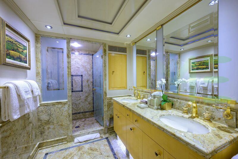 With a gross tonnage of 703, the STARSHIP yacht for charter provides ample interior space for enjoyment. STARSHIP offers accommodations for up to 12 guests in 6 lavishly appointed staterooms. She can also carry up to 11 crew onboard, including the Captain, to ensure a relaxed luxury yacht charter experience. The interior design by Las Olas Design, Glade Johnson Design, Inc. exudes a sense of luxury, seamlessly blending comfort with style.