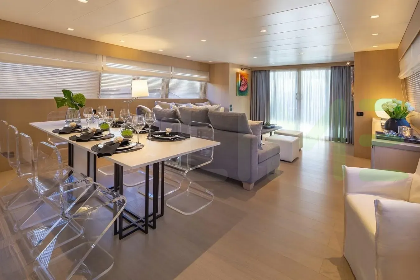 The exterior, designed by Admiral, captures your attention with beautiful lines and impeccable craftsmanship. Whether you're lounging on the spacious decks or enjoying water sports in a secluded anchorage, the SUMMER FUN yacht for charter, built of Aluminium, offers a wealth of opportunities for relaxation and adventure.