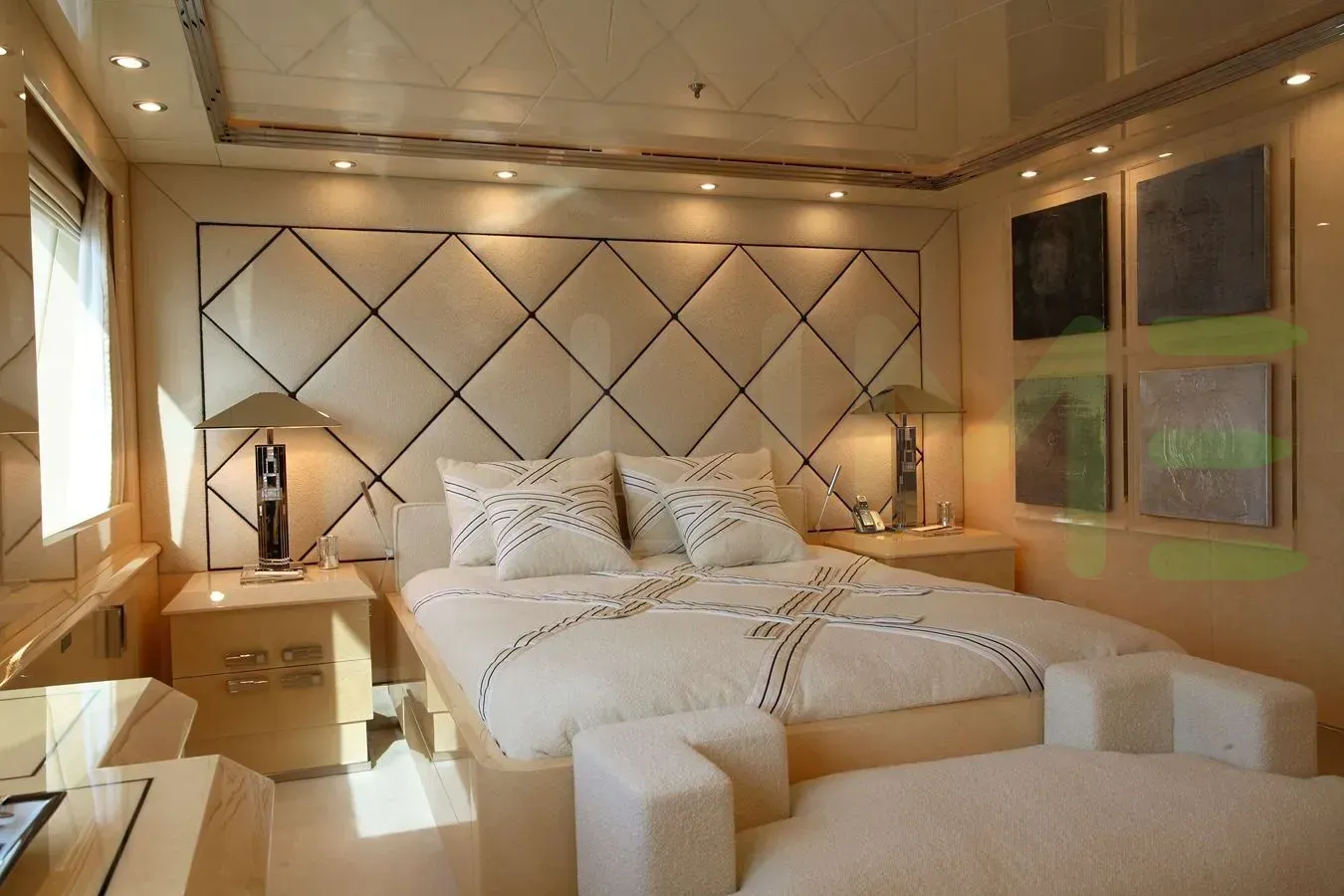 With a gross tonnage of 748, the SUNDAY yacht for charter provides ample interior space for enjoyment. SUNDAY offers accommodations for up to 12 guests in 6 lavishly appointed staterooms. She can also carry up to 15 crew onboard, including the Captain, to ensure a relaxed luxury yacht charter experience. The interior design by Studio Ipso exudes a sense of luxury, seamlessly blending comfort with style.